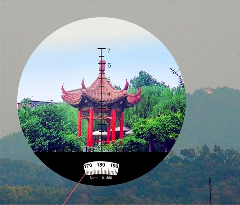 3.Gire el círculo de medición, alinee la flecha en la posición donde la escala de densidad es 3 y la distancia de observación es de aproximadamente 160 metros según la altura del objeto de 5 metros.