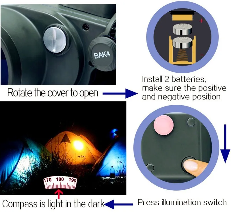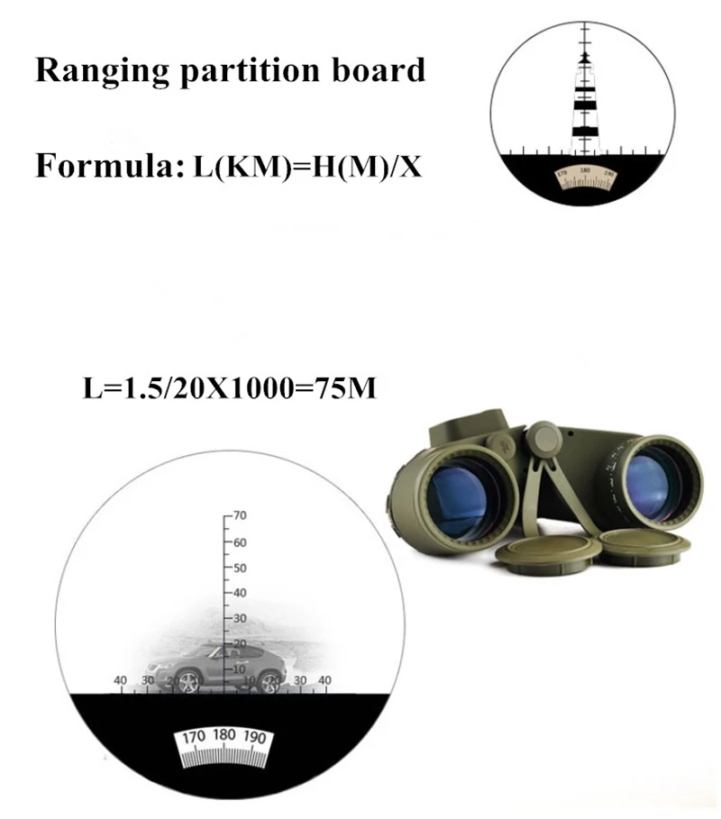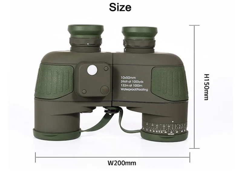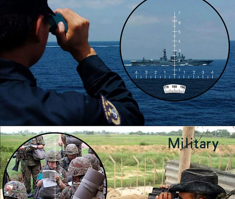 【Binoculares con brújula y telémetro】 Es una brújula iluminada incorporada para la ubicación de la dirección, con un telémetro interno para calcular la distancia y el tamaño del objeto en el ocular izquierdo directamente.Los binoculares marinos incluyen baterías (LR936/AG9), que proporcionan el máximo brillo de la imagen incluso en condiciones de poca luz.