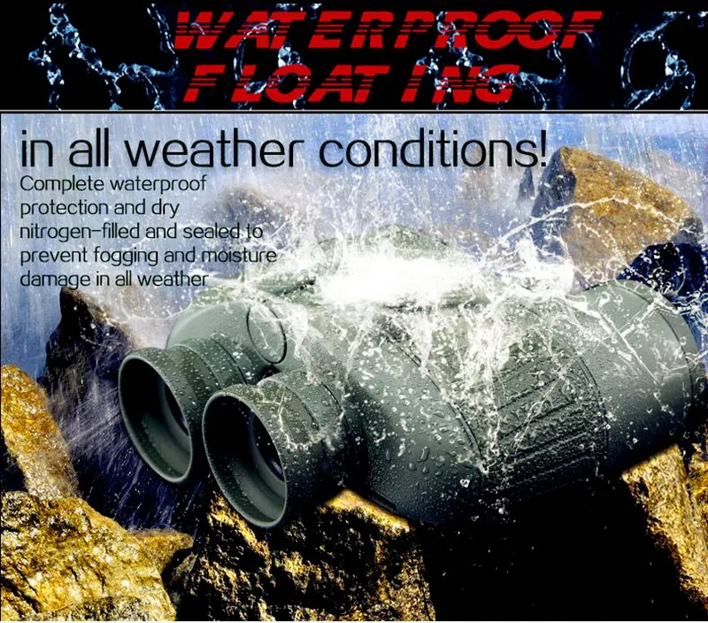 【Binoculares marinos impermeables IPX7】 Están diseñados con llenado interno de nitrógeno y sellado de junta tórica, lo que hace que los binoculares marinos sean completamente impermeables y capaces de flotar en el agua.La purga y el sellado con nitrógeno seco evitan daños por humedad en todas las condiciones climáticas.