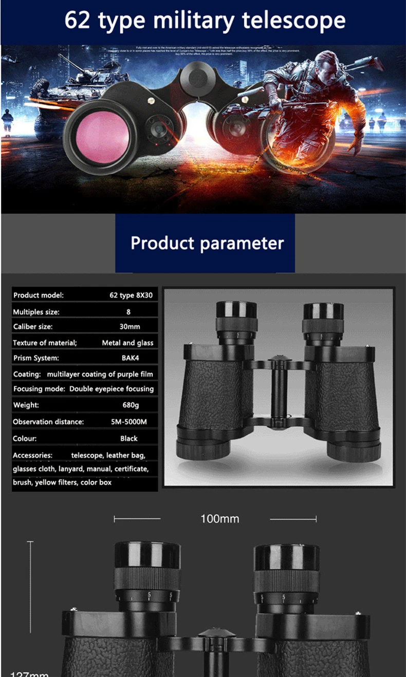 Militaire compacte verrekijker met afstandsmeter dradenkruis Waterdicht Lichtgewicht Tactische precisietelescoop voor de jacht Birdwatch【Parameter】1. Materiaal: volledig metaal2. Oogstukdiameter: 22 mm3. Doellensdiameter: 30 mm4. Absoluut echte parameters【Opmerking】De maximale vergroting van alle telescopen is 8-voudig en andere producten voldoen aan valse normen【Feature】1. Militaire telescoop Super Clear2 Hoge vergroting: de vergroting is 8-voudig geüpgraded en kan een bredere observatie-ervaring op ultra-afstanden bieden.3.Kristalhelder zicht: Optische brillen met hoge resolutie, uitgerust met alle brillenzen en BaK-4-prisma's met hoogwaardige volledige meerlaagse coating, kunnen ervoor zorgen dat u geniet van een levendig en betekenisvol leven bij het kijken naar vogels buitenshuis, reizen, bezienswaardigheden, jagen, enz.【Pakketlijst】1.Telescoop2.Fijne leren tas3.Verpakking in kleurdoos4.Certificaten en instructies5.Reinigingsborstel6.Filterdeksel7.Lensreinigingsdoekje8. Objectieflensdop