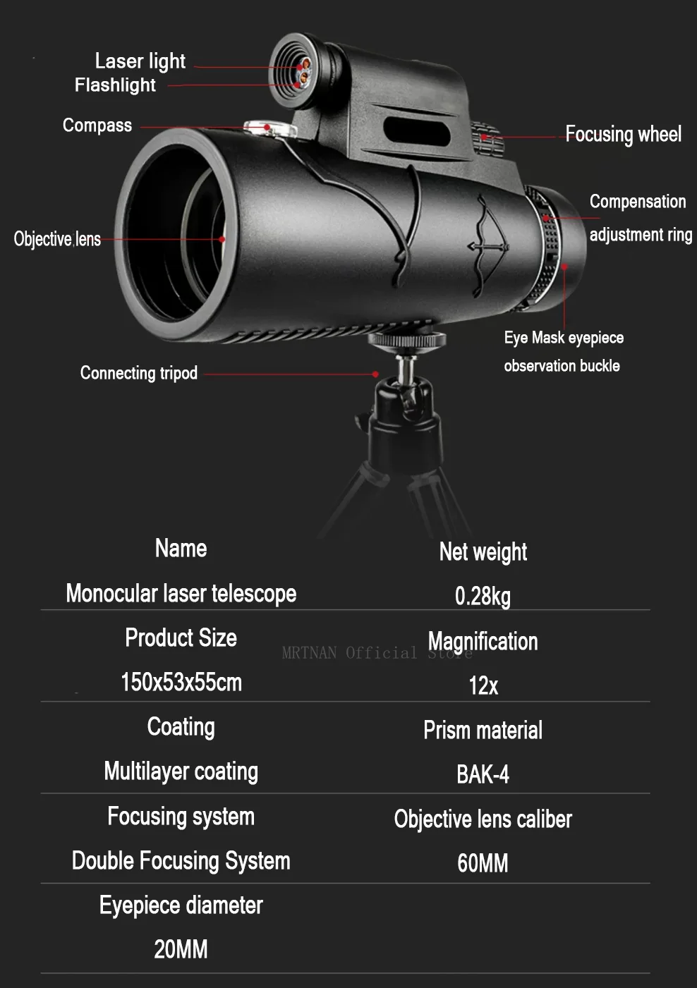 50X60 Powerful Binoculars Long Range Zoom HD Portable Professional Telescope Monocular Low Night Vision for Hunting