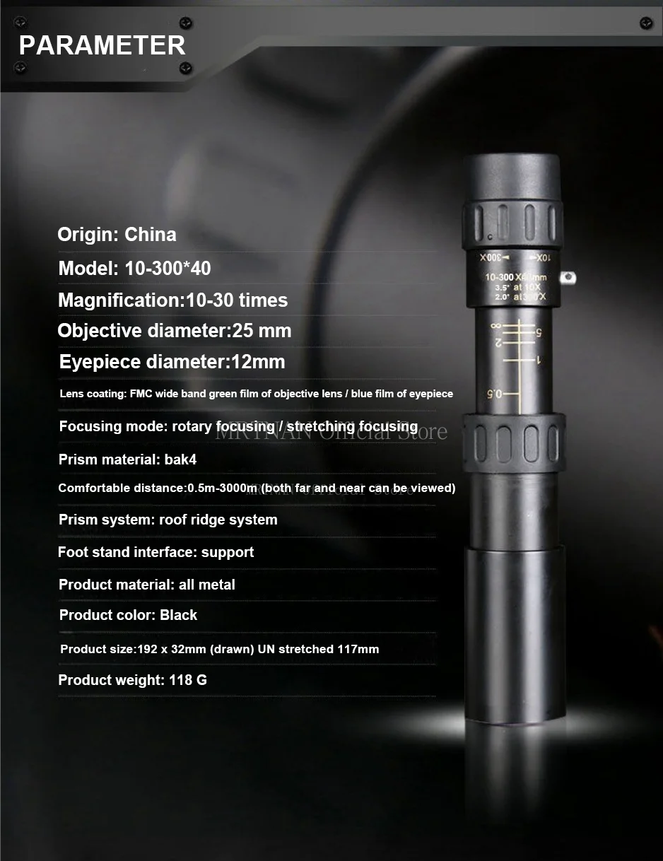 Binoculares potentes de Metal con Zoom 10-300X HD Bak4, telescopio profesional portátil de largo alcance Monocular para caza