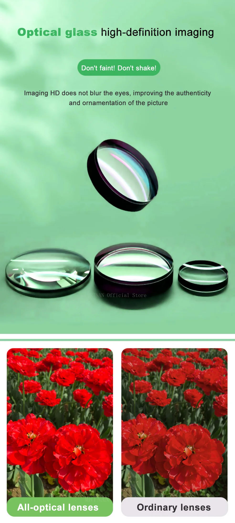 4. Recubrimiento de película verde de banda ancha para aumentar la transmitancia de luz y hacer que el color de la imagen sea más completo.