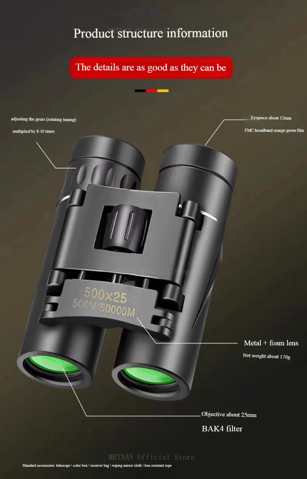 1. Resistente al agua, lo que puede extender mejor la vida útil del telescopio. Fácil de manejar en cualquier entorno hostil.