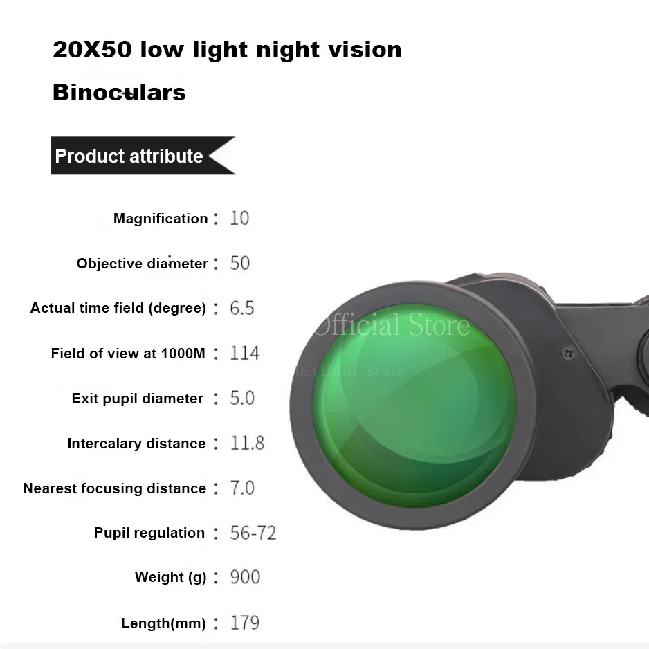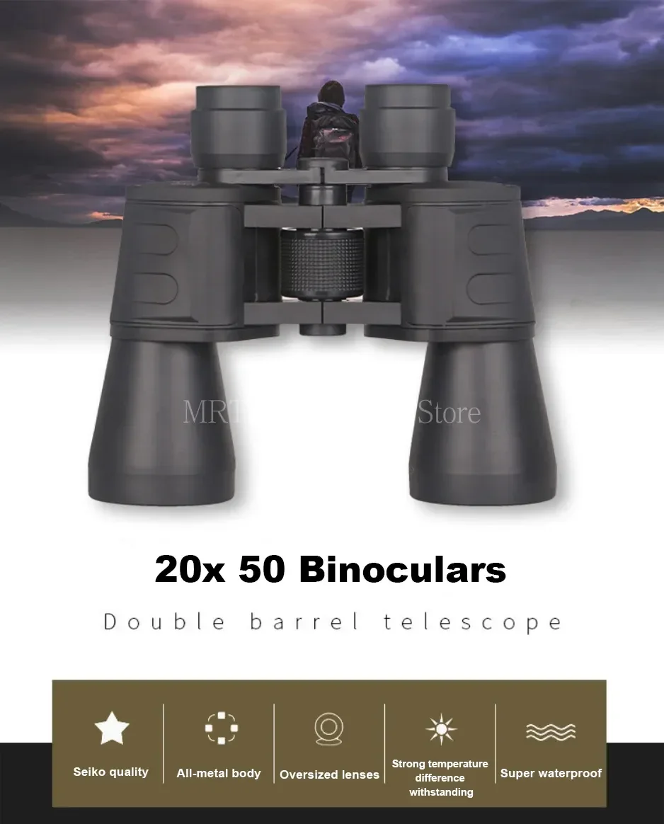 Binoculares potentes 20X50, telescopio de largo alcance con Zoom HD profesional BAK4-Prism, ocular grande monocular para caza