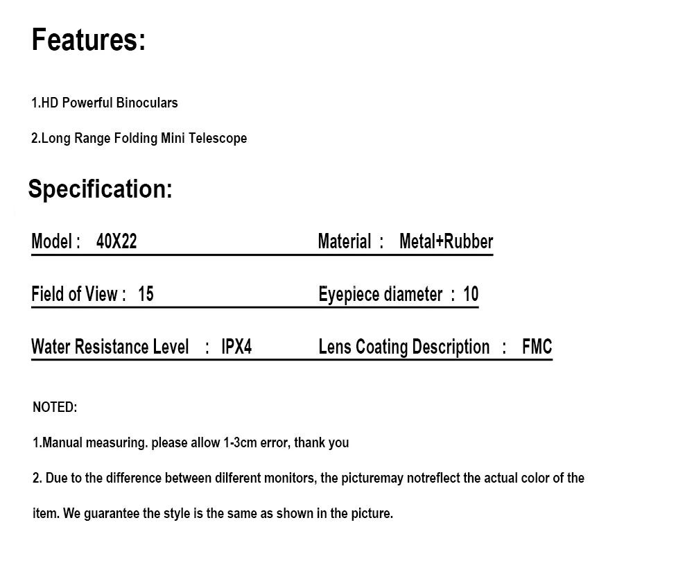 • Visualización de largo alcance: con un alcance de 2000 M, estos binoculares le permiten detectar objetos distantes y disfrutar de un campo de visión más amplio.