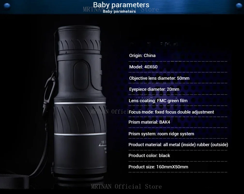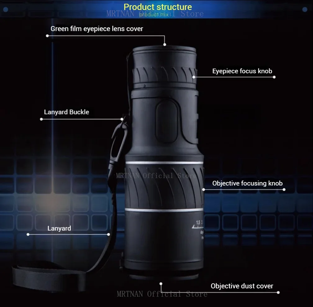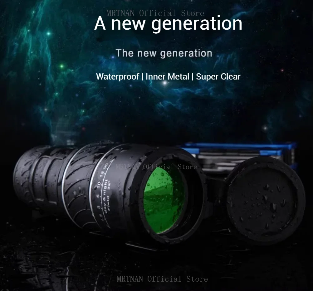 Telescopio Monocular 40X60, binoculares con Zoom de doble enfoque, 1500M/9500M de largo alcance con correa, lente óptica/Goma para exteriores