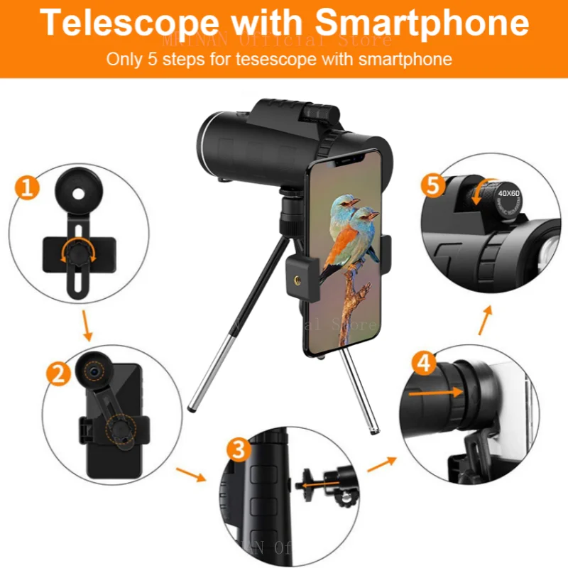 Binoculares potentes con Zoom 40X60 HD BAK4, telescopio profesional prismático portátil de largo alcance monocular para caza