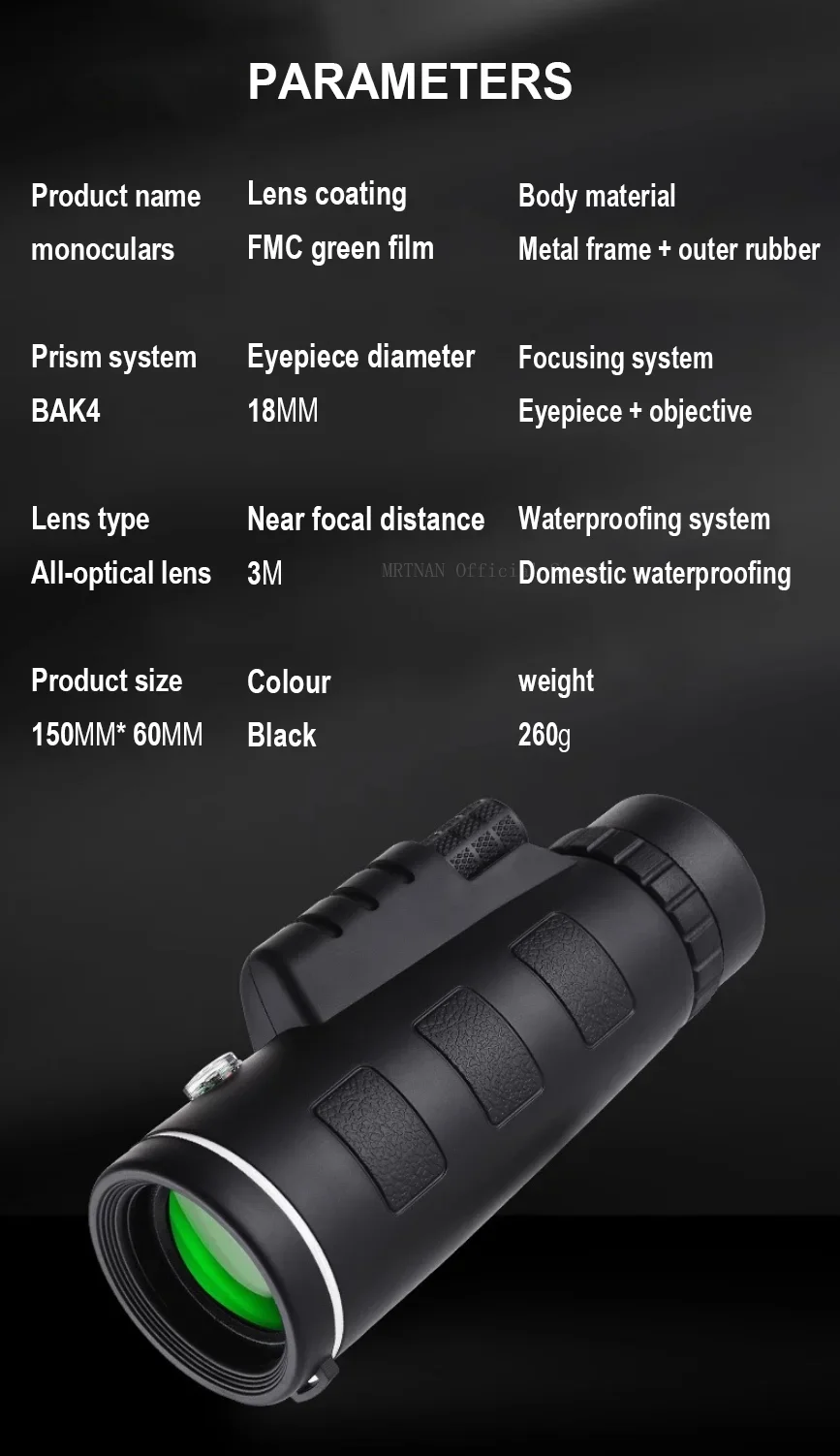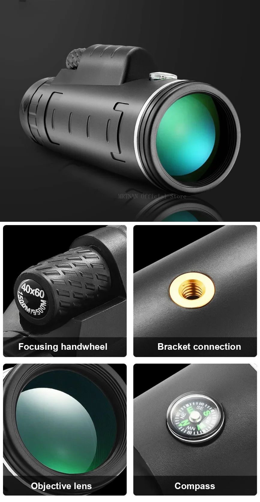 Binoculares potentes con Zoom 40X60 HD BAK4, telescopio profesional prismático portátil de largo alcance, monocular para caza