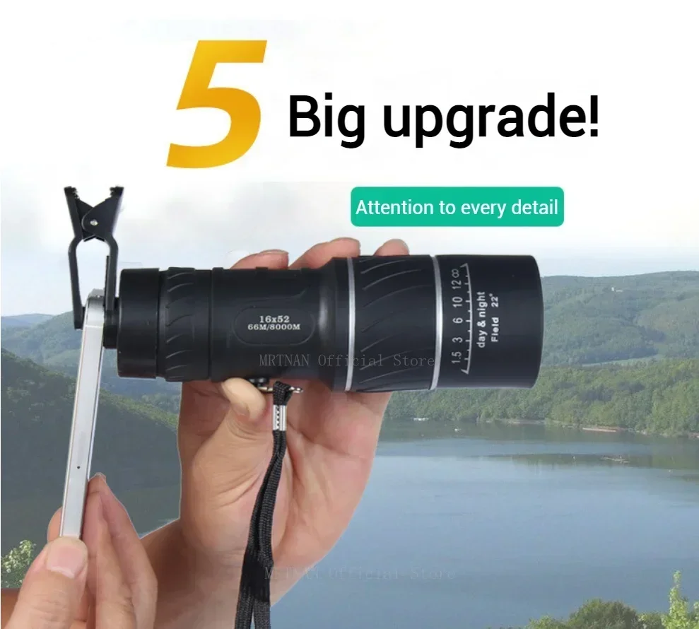 Telescopio Monocular 16x52, telescopio óptico de doble enfoque de alta potencia, telescopio de cristal nocturno de largo alcance de gran aumento