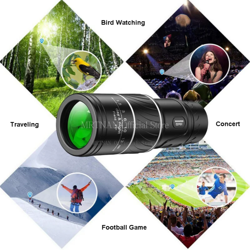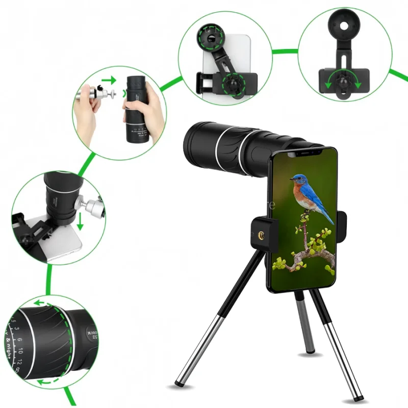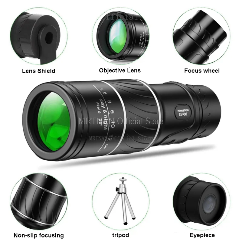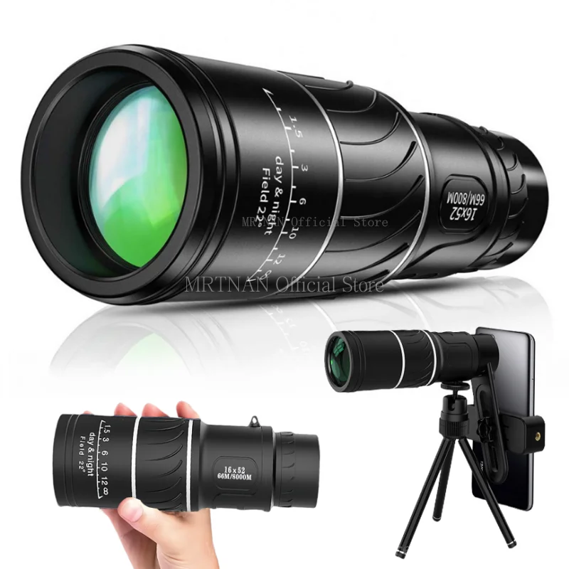 Telescopio Monocular Hd de alta potencia 16X52, prisma Bak4 con Zoom de largo alcance con trípode, Clip para teléfono para escopo de caza y acampada al aire libre