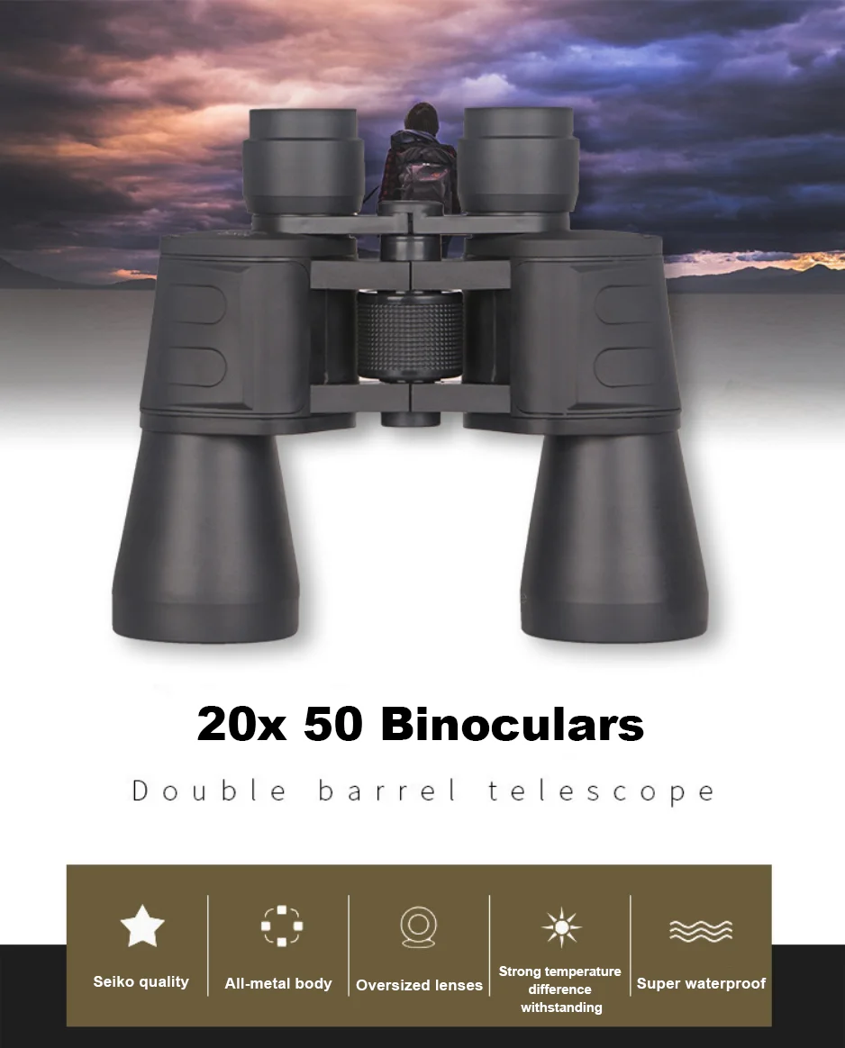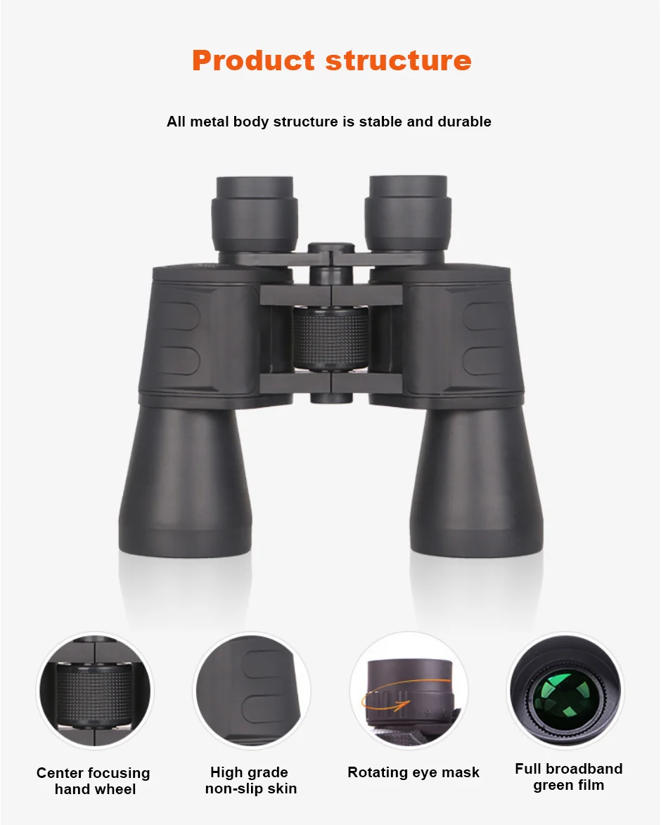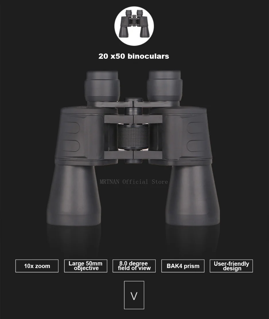 Binoculares potentes de largo alcance 20x50 Zoom HD BAK4-Prism Telescopio profesional de gran aumento para caza y turismo