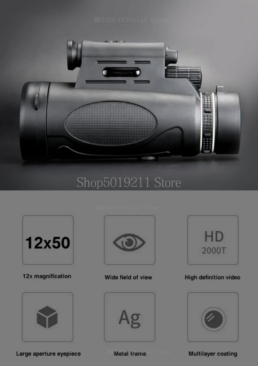 Binoculares potentes 12X50, Zoom de largo alcance, telescopio profesional portátil HD, monocular, visión nocturna baja para caza