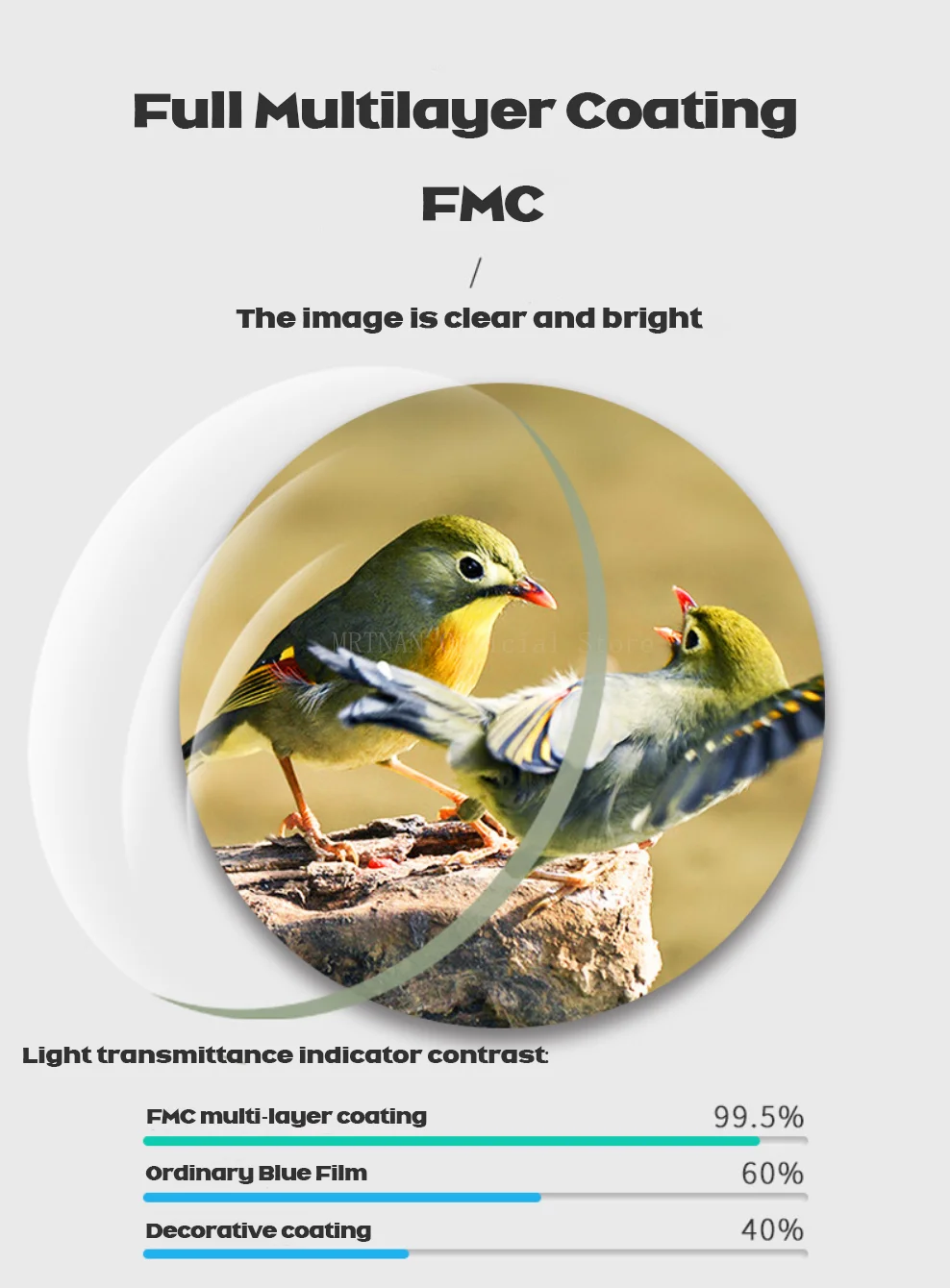 Recubrimiento: ocular de película azul, lente objetivo de película verde