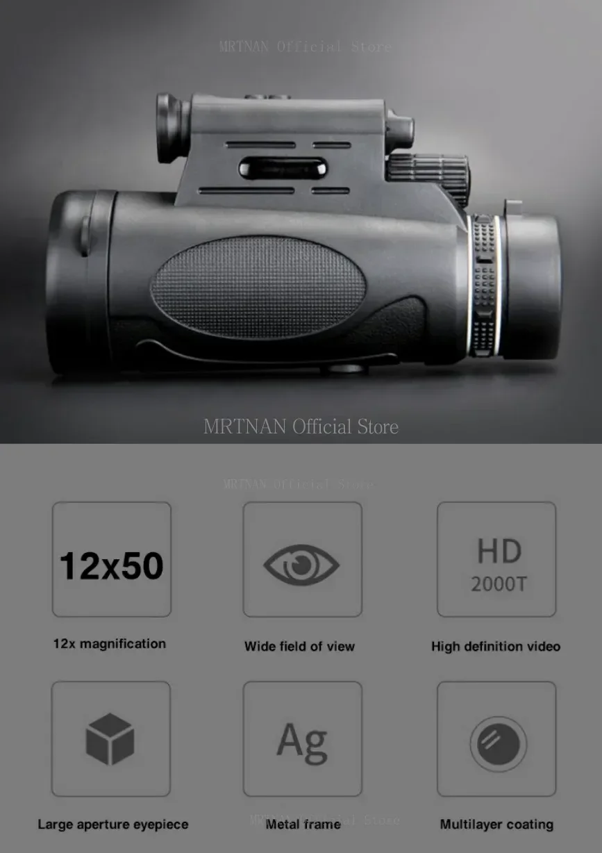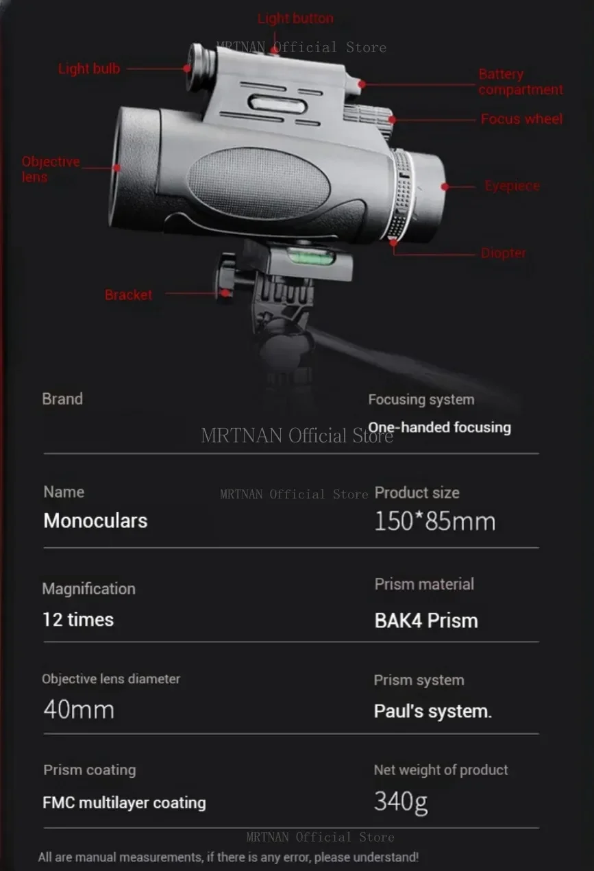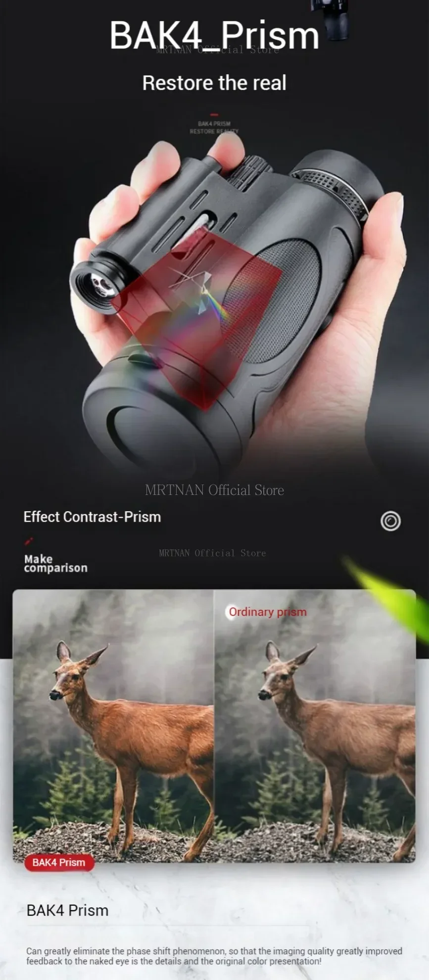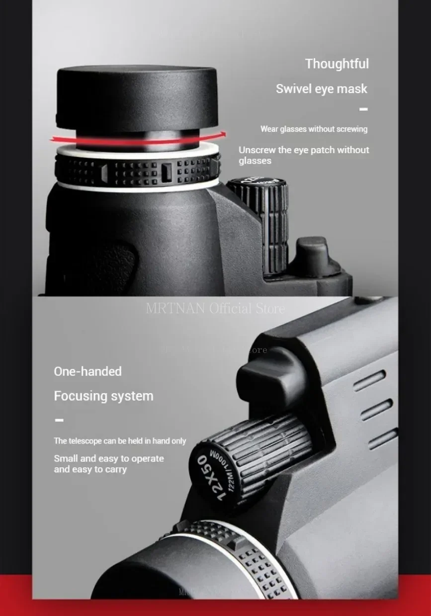 Binoculares potentes portátiles con Zoom HD Bak4 de 12x50, telescopio profesional monocular para caza y Camping