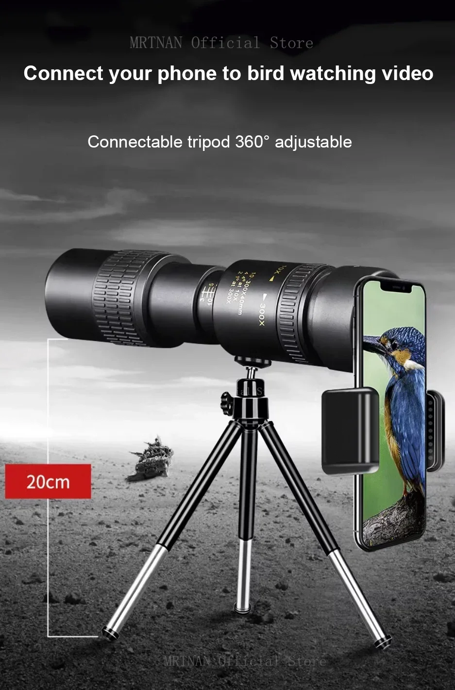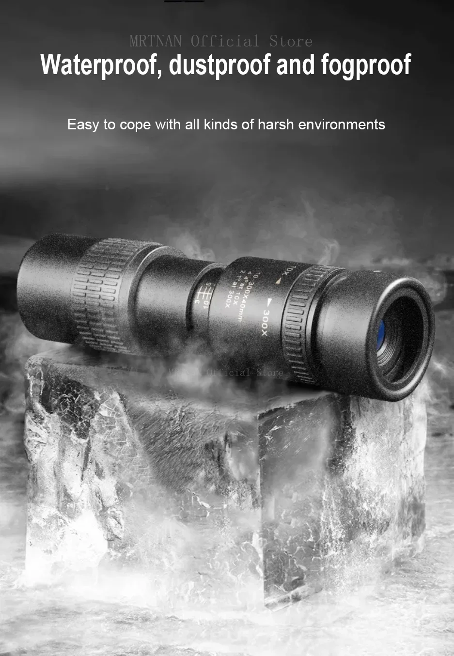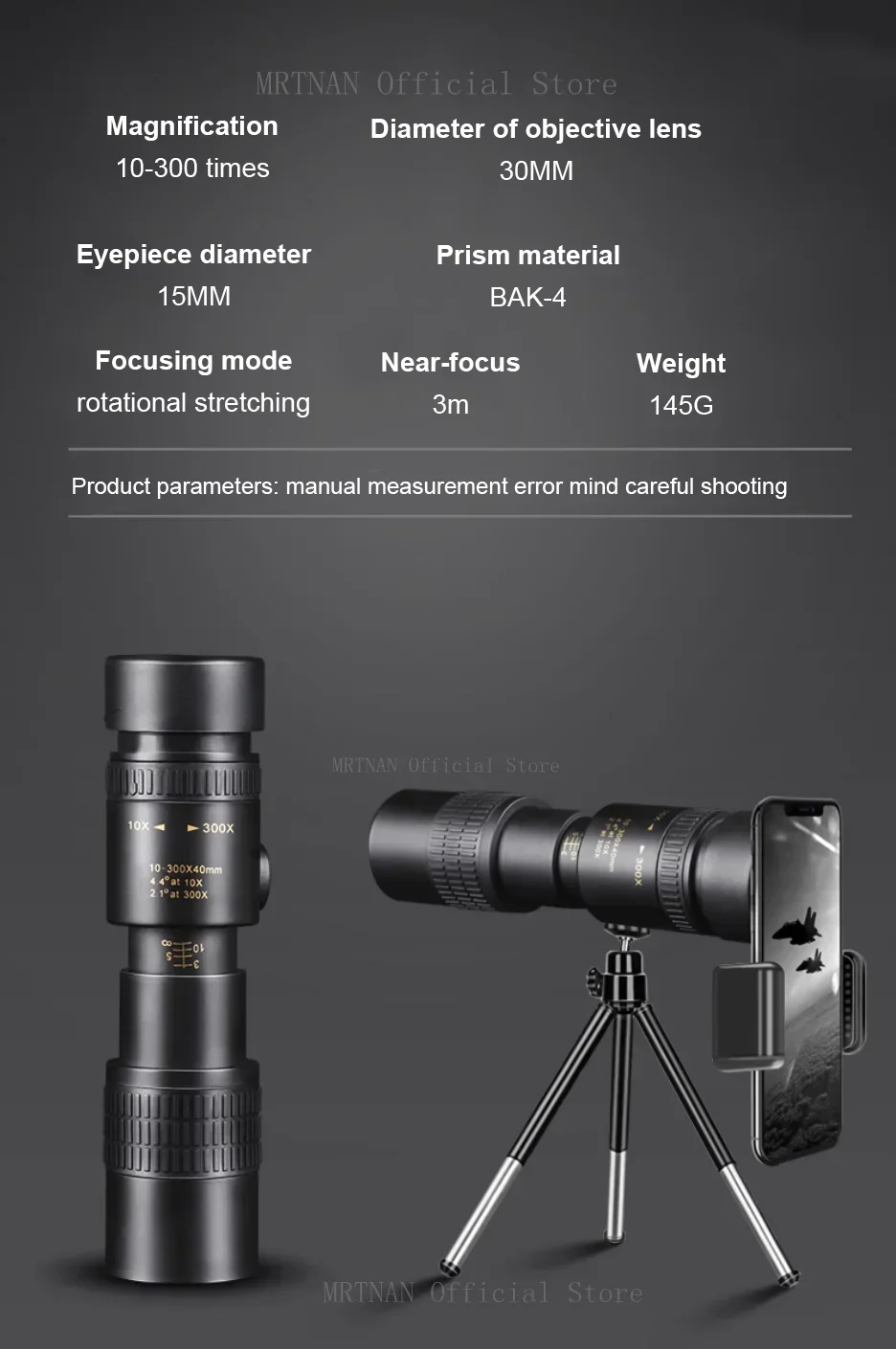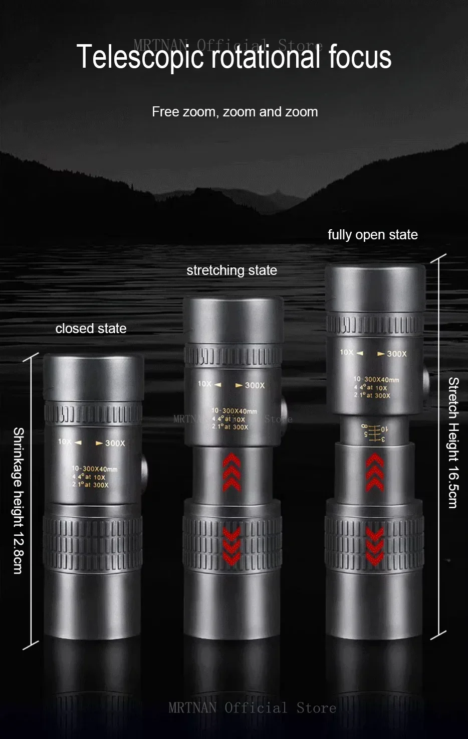 Binoculares potentes con Zoom 10-300X, telescopio monocular profesional de largo alcance HD, prismas BAK4 de alta calidad, portátiles para acampar