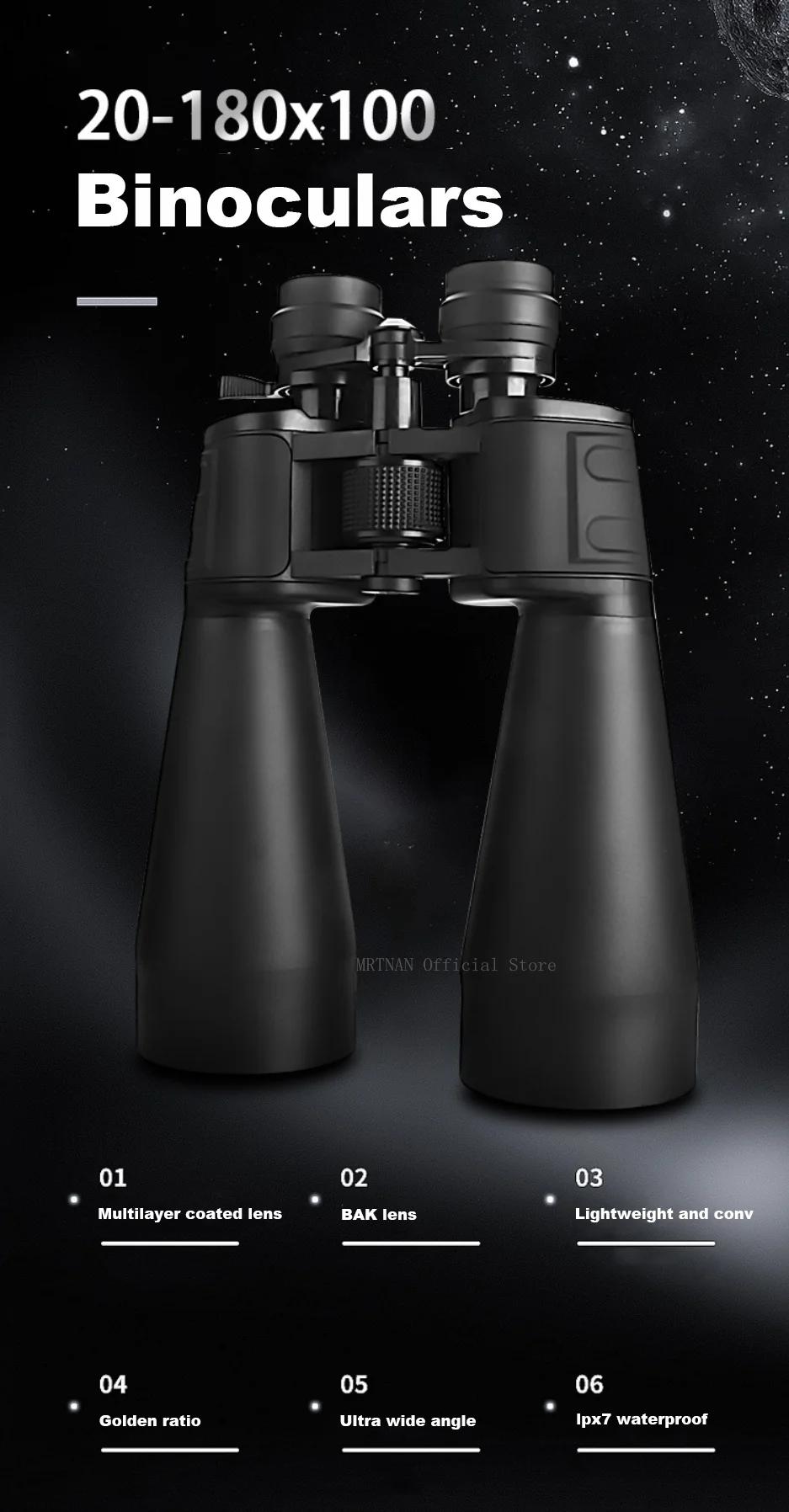 Binoculares profesionales 20-180X100 Zoom Telescopio HD Binocular de gran angular de largo alcance para visión nocturna baja