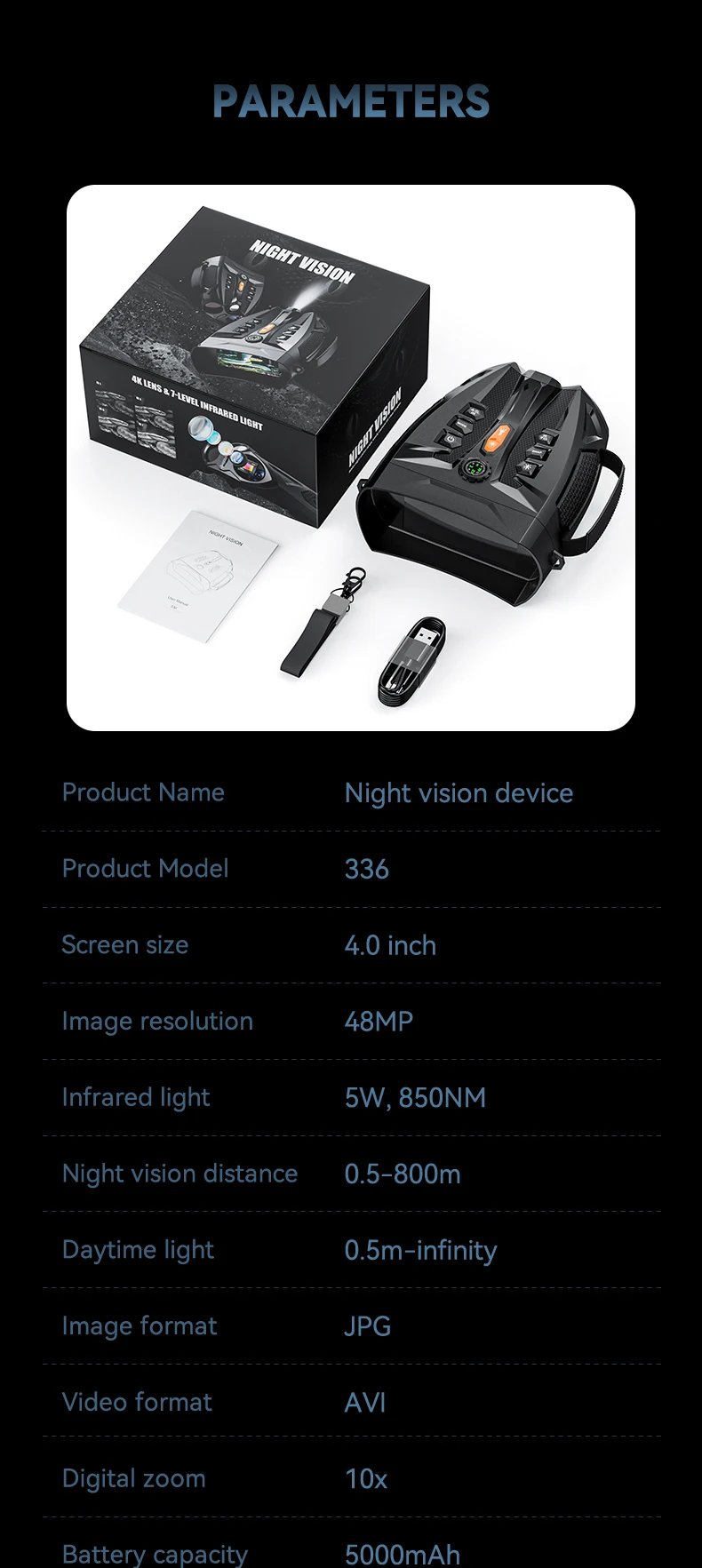 - Batería de alta capacidad de 5000 mAh para uso prolongado: equipados con una potente batería recargable de 5000 mAh, nuestros binoculares de visión nocturna 4K brindan un rendimiento duradero para caza prolongada, operaciones tácticas y observación de vida silvestre.No más recargas frecuentes: experimente una visión nocturna mejorada con tecnología de infrarrojos (IR) que lo mantiene explorando durante horas en total oscuridad.