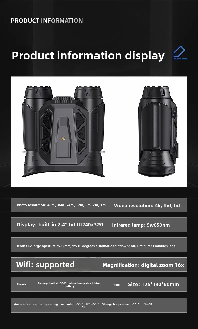 Binoculares de visión nocturna montados en la cabeza NVC900 4K UHD WiFi cámara Digital infrarroja telescopio 48MP 16X Zoom para caza y Camping