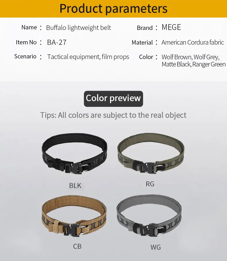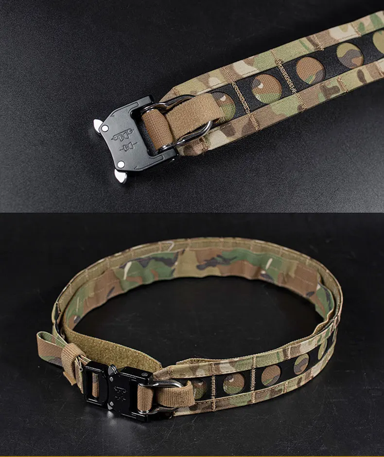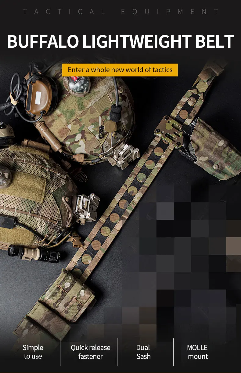 Bison-cinturón táctico Molle militar Airsoft, cinturón ligero con hebilla, de separación rápida, doble capa, para caza al aire libre