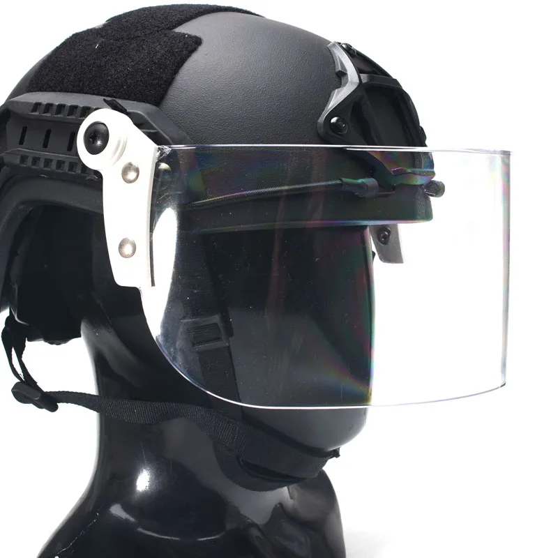 Esta lente antidisturbios transparente es adecuada para la mayoría de los cascos ferroviarios, como cascos rápidos, cascos Mickey Action Edition, cascos móviles IBH, cascos AF, etc. Plug and play, fácil de instalar y desmontar.