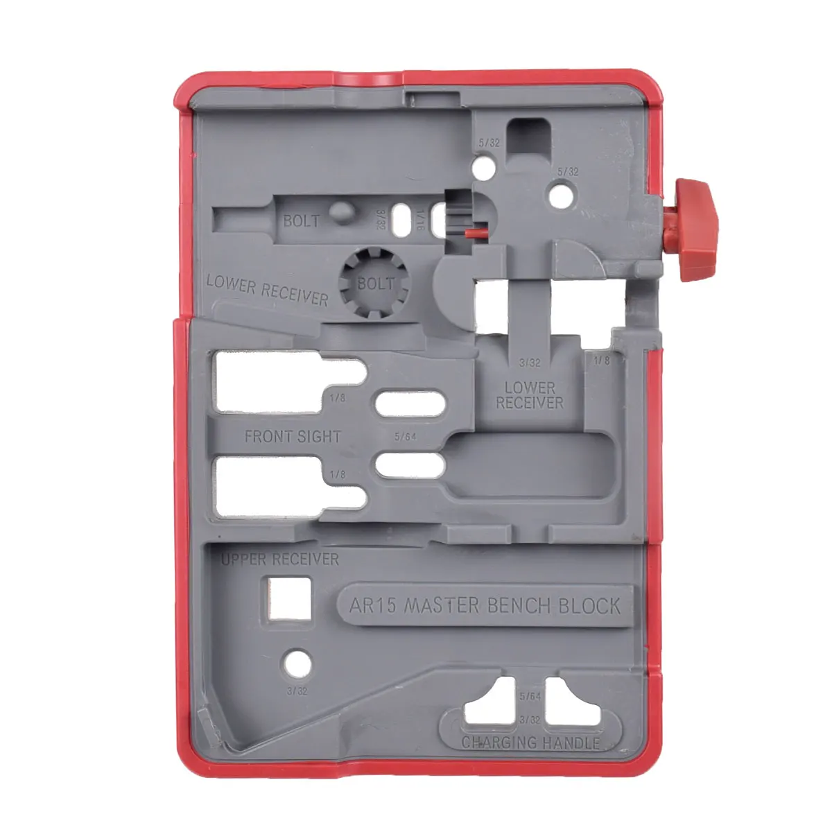 Este bloque de banco maestro contiene 5 componentes clave AR15 en 8 orientaciones diferentes para permitirle derribar e instalar hasta 13 pines diferentes.El bloque está envuelto en una moldura excessiva que sujeta su banco para que no se deslice.Las etiquetas claras y grabadas le indican qué componente se adapta y qué tamaño de punzón necesitará para sacar las clavijas.La mayor innovación está montada en el interior: cuatro potentes imanes agarran inmediatamente cualquier alfiler que perfora y lo sujetan de forma segura al bloque.Incluso incluye almacenamiento para pines de tamaño común.Este es un bloque de banco con el que puedes imaginar.