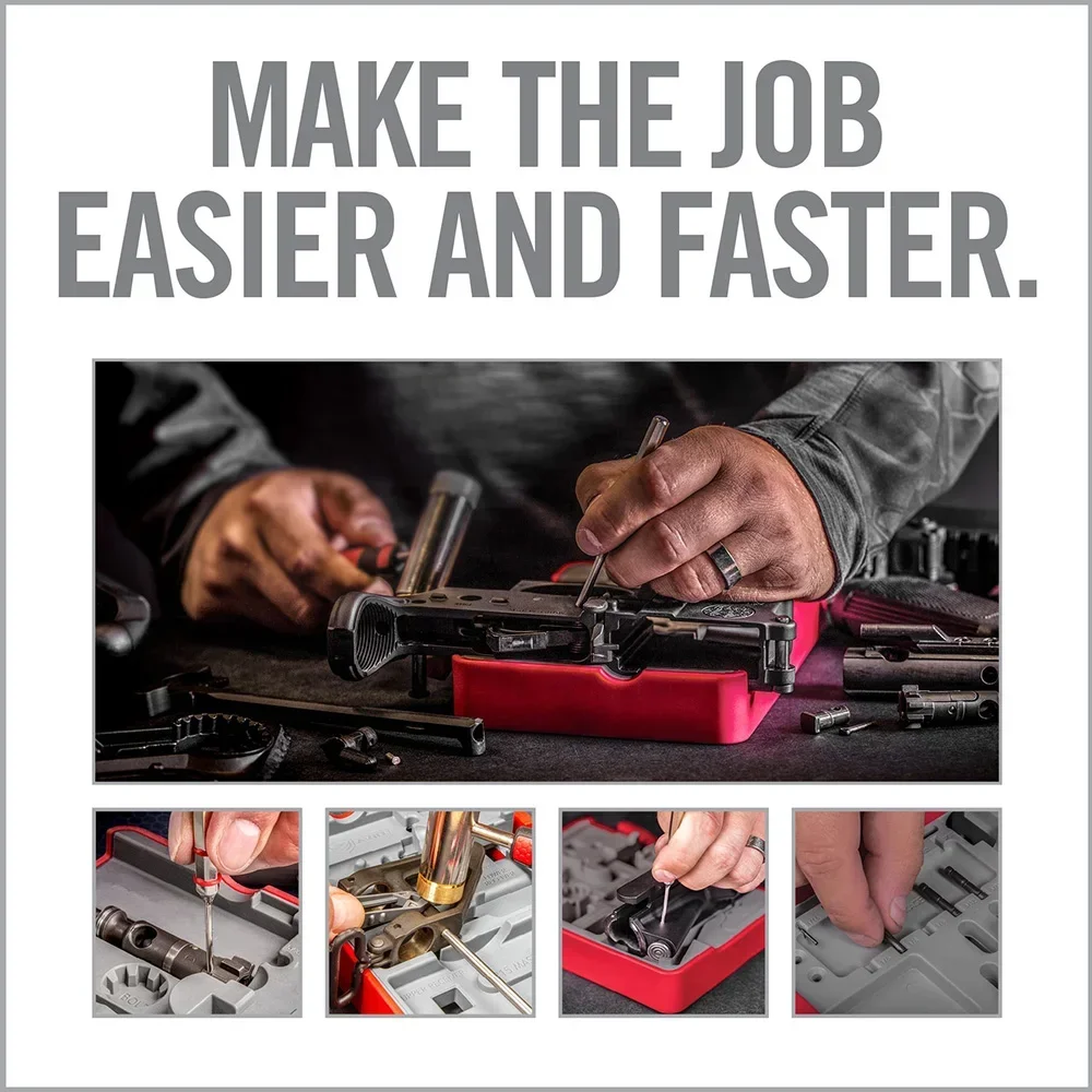 Un gran artículo para cualquiera que tenga un sistema AR. El plástico es duradero, las piezas encajan perfectamente en sus ranuras sin holgura alguna. Lo probé con rodillos: funcionó sin pérdida para el receptor y la unidad. Es genial que tenga imanes incorporados para sujetarlo a una mesa de trabajo de metal, pero incluso en el suelo o dentro de una caja, el bloque no se mueve gracias a su superficie antideslizante. Definitivamente vale la pena.