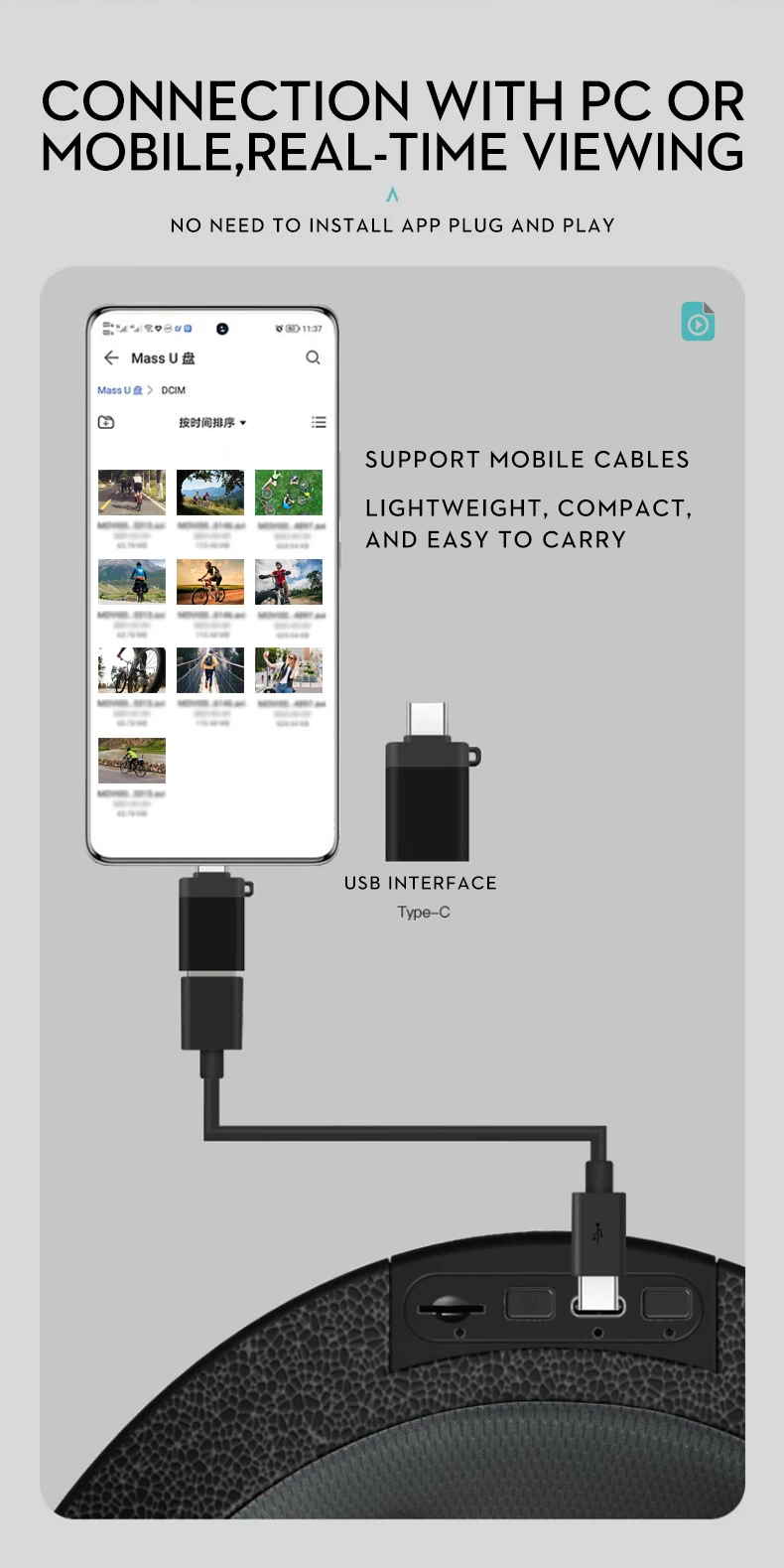 Batería de polímero de litio incorporada/capacidad 1300mAh, duración de la batería sin complicaciones, 8 horas de tiempo de video