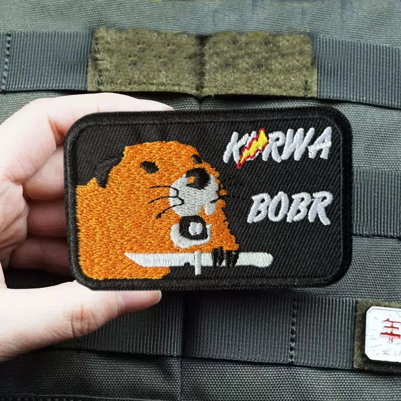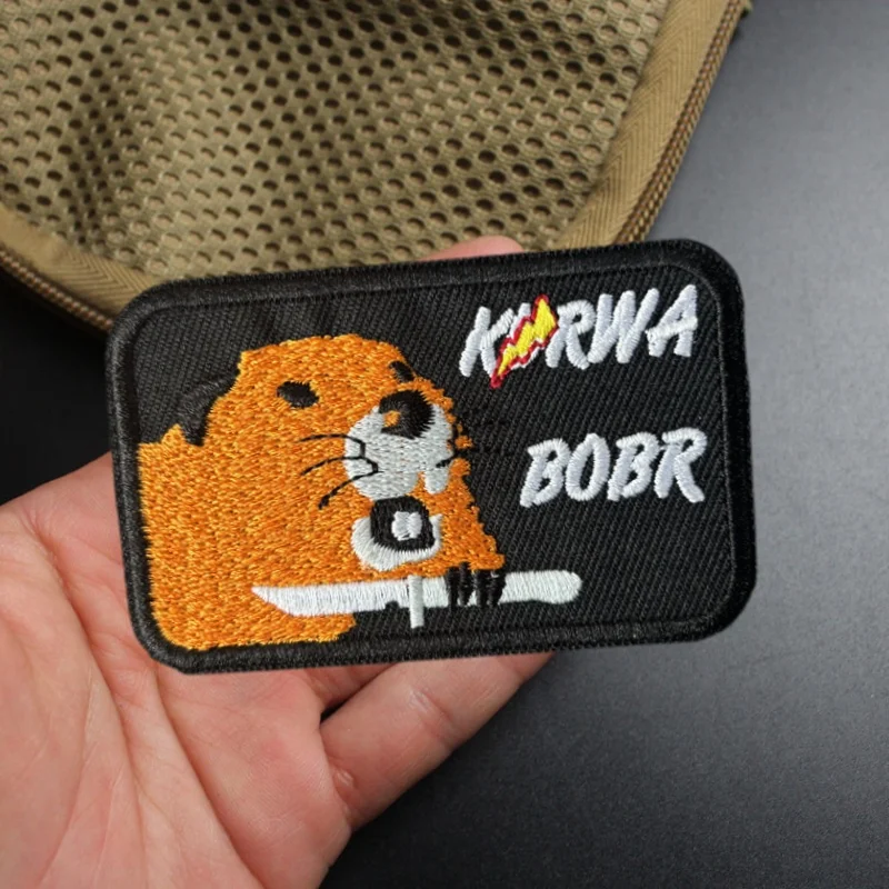 BOBR KURWA parche bordado insignia de moral táctica gancho bucle emblema parches militares mochila pegatinas de ropa