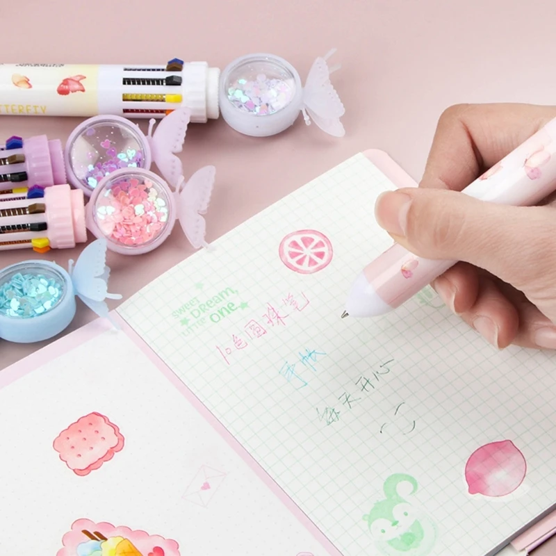 Features:OOTDTYDiscover the versatility of our Glitterring Sequins 10-Color-in-1 Multicolored Ballpoint Pen, featured ten different color for seamlessly switching and various writing need.