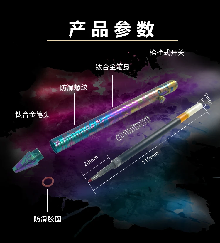 Bolígrafo de escritura de perno de aleación de titanio de Color para exteriores