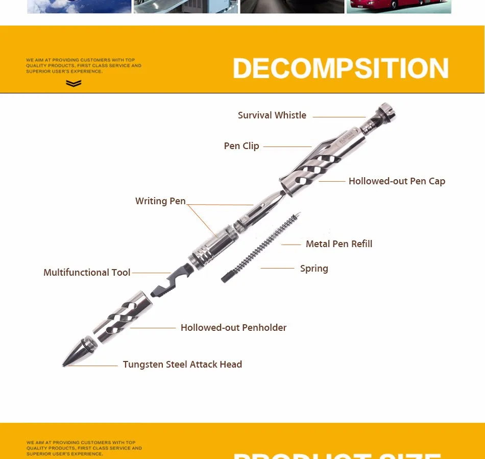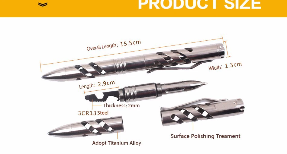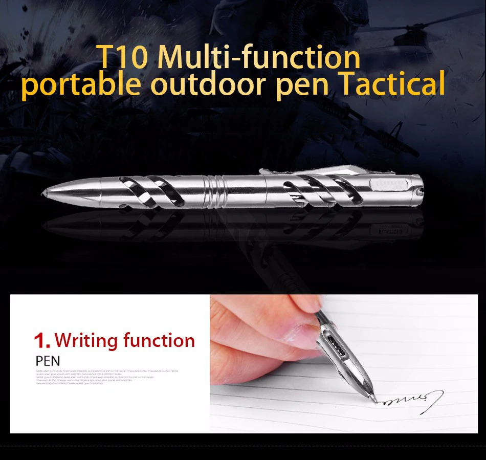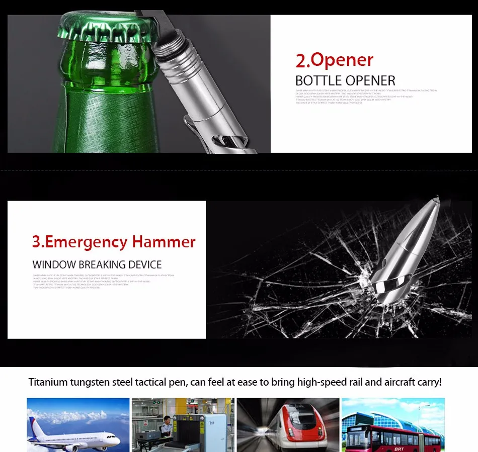 Bolígrafo táctico de acero inoxidable + cabeza de tungsteno, bolígrafo de autodefensa para supervivencia al aire libre, herramienta de emergencia de seguridad multifuncional