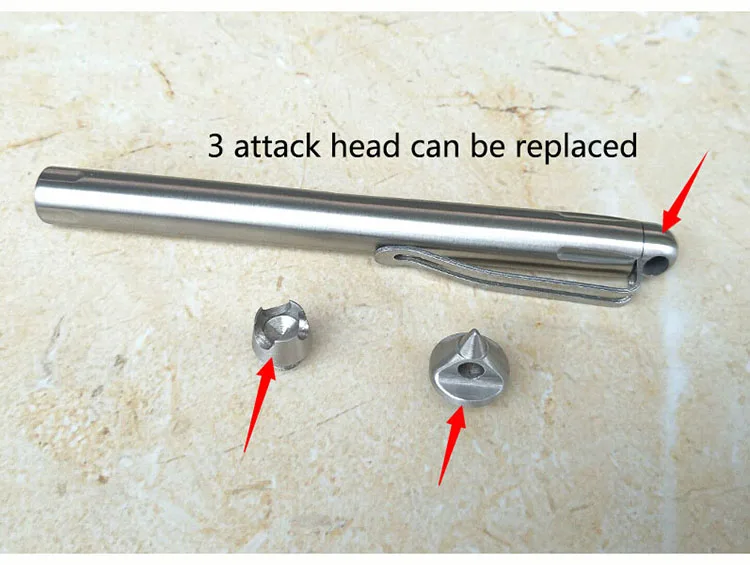 Material: Cuerpo del bolígrafo con acero inoxidable de alta calidad, cabeza de ataque con aleación