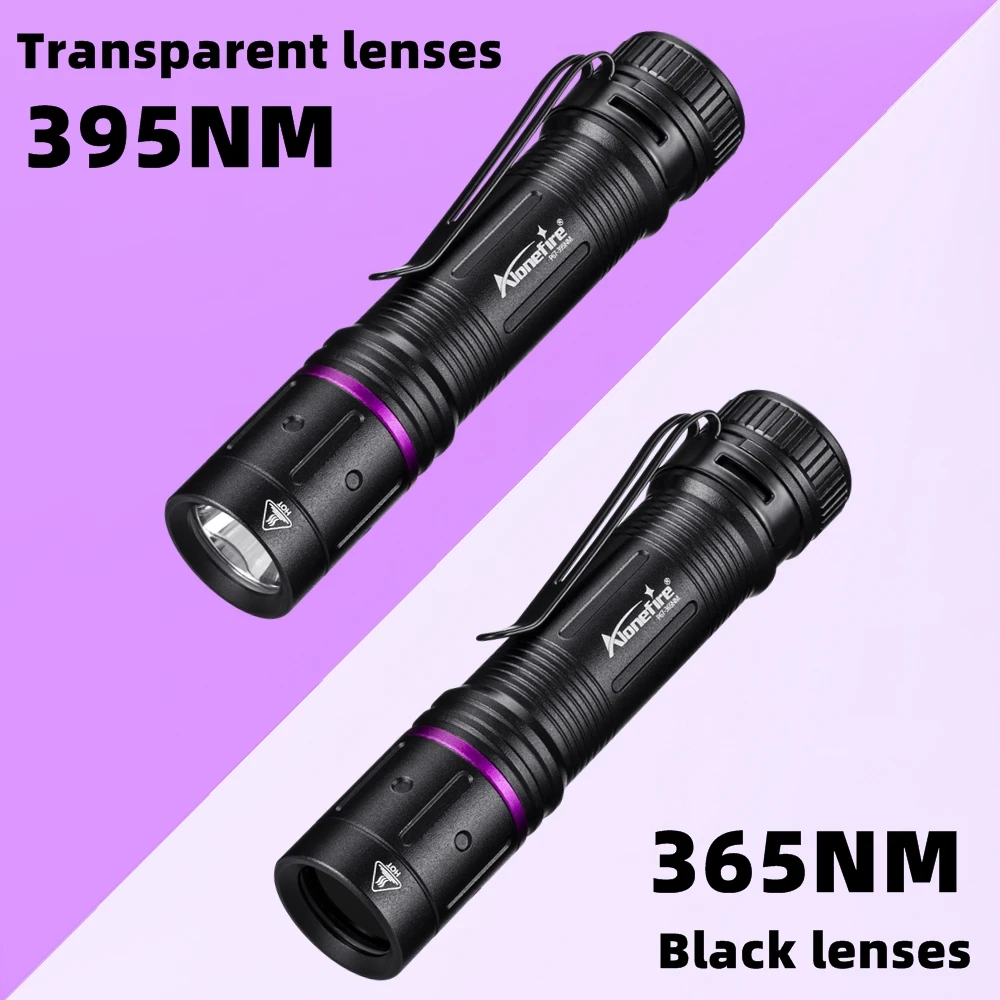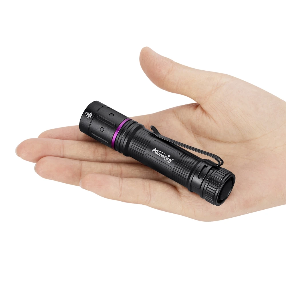 La luz ultravioleta de 365 nm es invisible a simple vista, por lo que no es tan BRILLANTE como la linterna de 395 nm, sino más perfecta para detectar una alta demanda como agentes fluorescentes y códigos de seguridad.UV de 365 nm es el espectro de detección realmente dedicado.Se puede utilizar con luz natural y funciona mejor en la oscuridad con poca fuga de luz visible.Se puede utilizar como detector de orina para mascotas (perros/gato)/escorpión/buscador/fluorescente/detector/moneda/licencia/tarjeta/