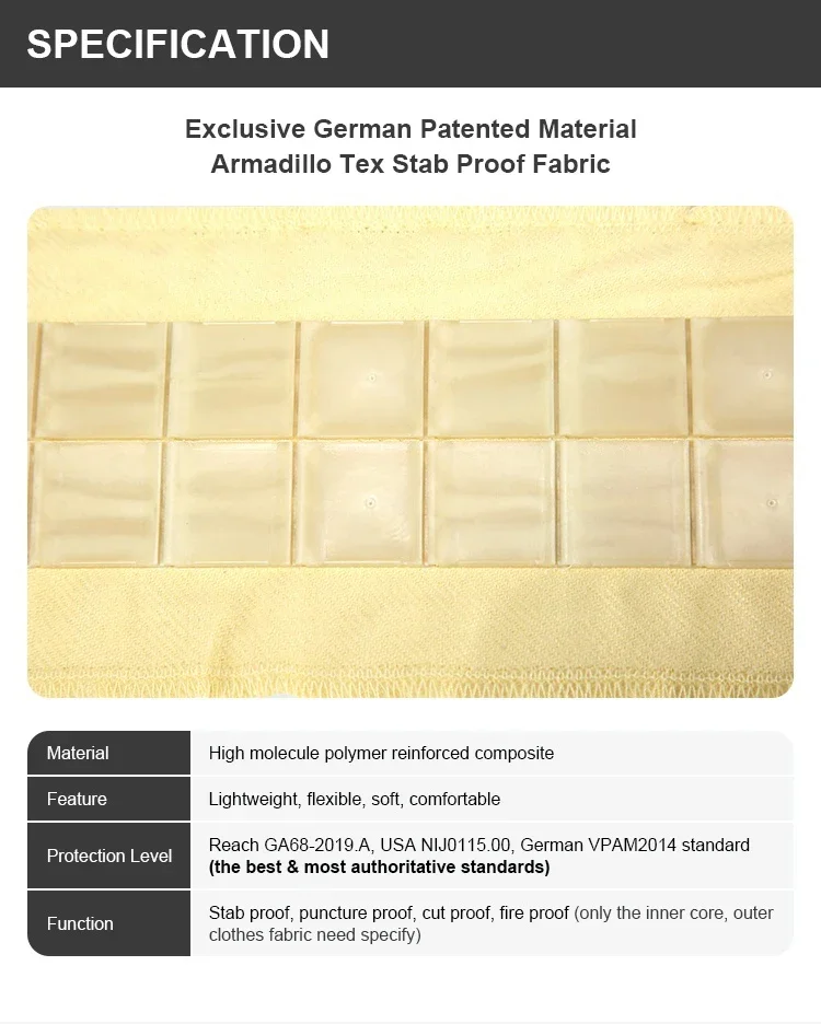 Anti-apuñalamiento Anti-Corte Anti-apuñalamiento y anti-apuñalamiento, anti-corte y corte, suave y flexible, el peso es cercano al chaleco ordinario, ocultable, ¡puede pasar los controles de seguridad!