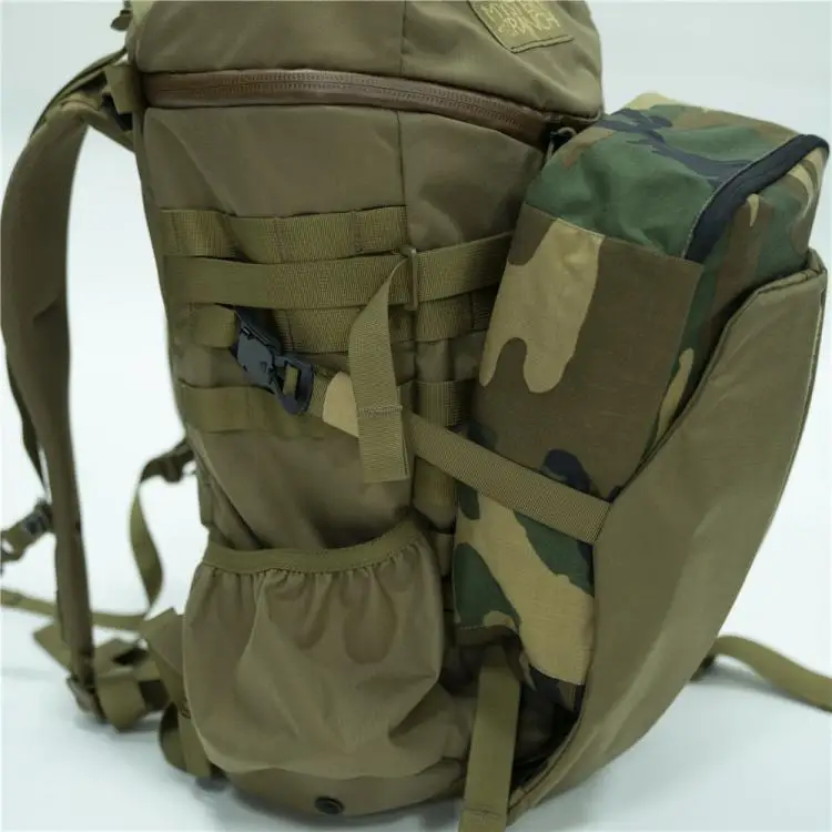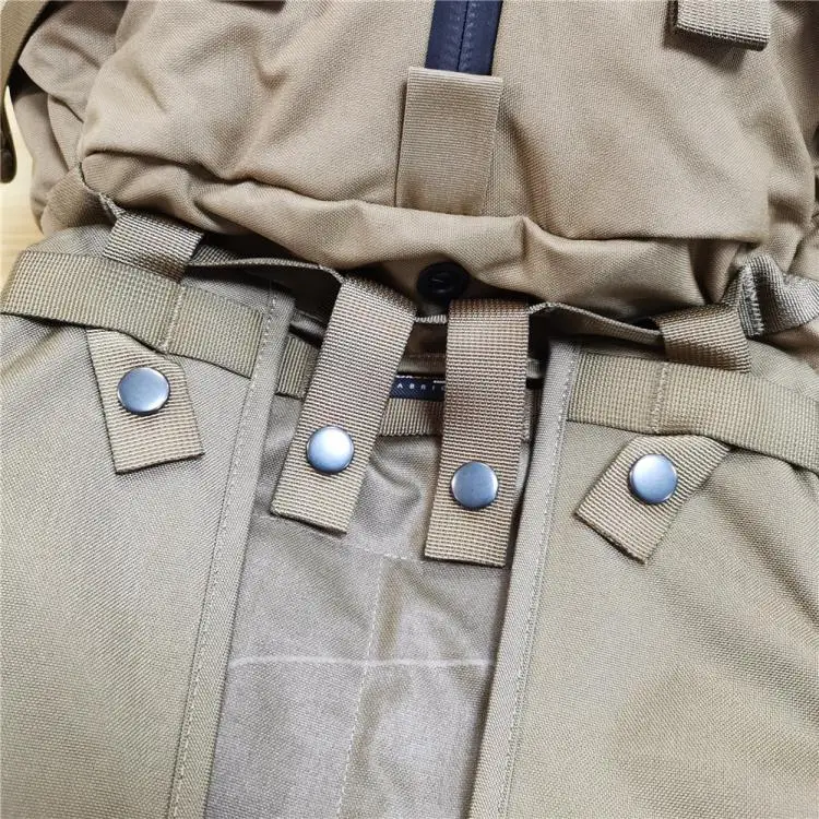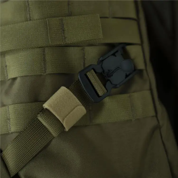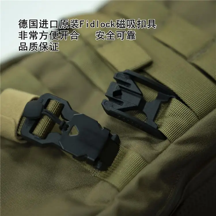 El lado del botón tiene un diseño de apertura, que se puede insertar directamente en la tira molle en ambos lados de la mochila.