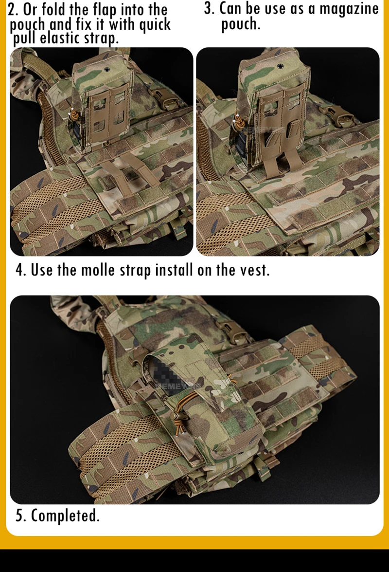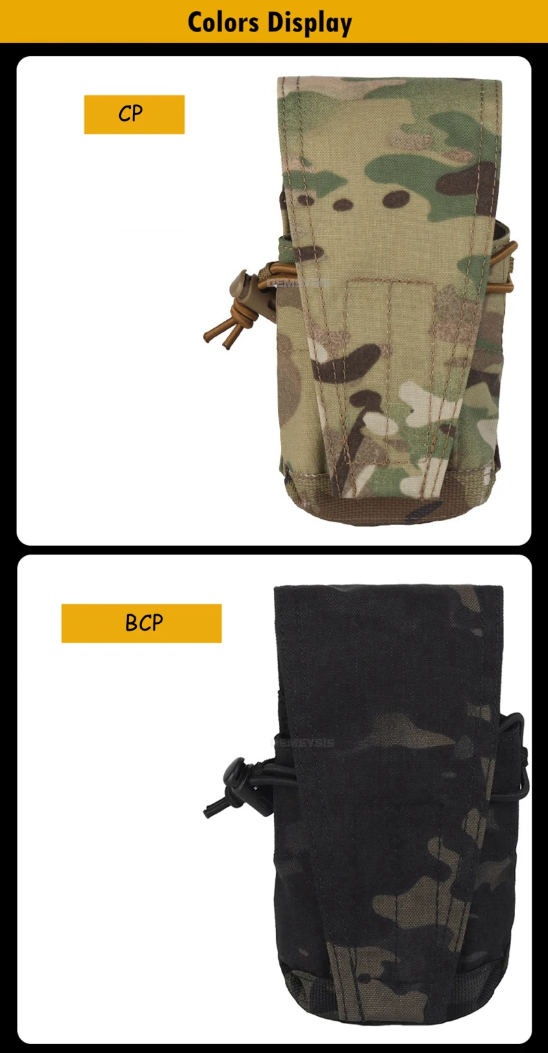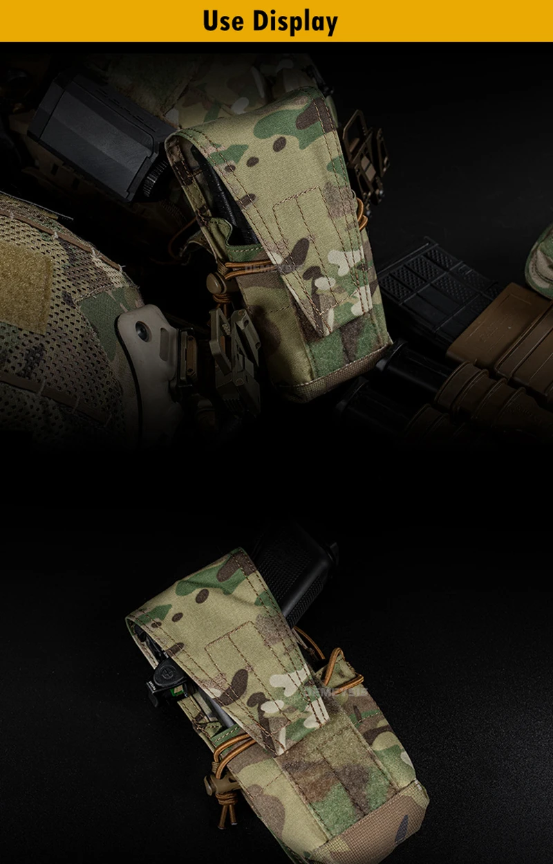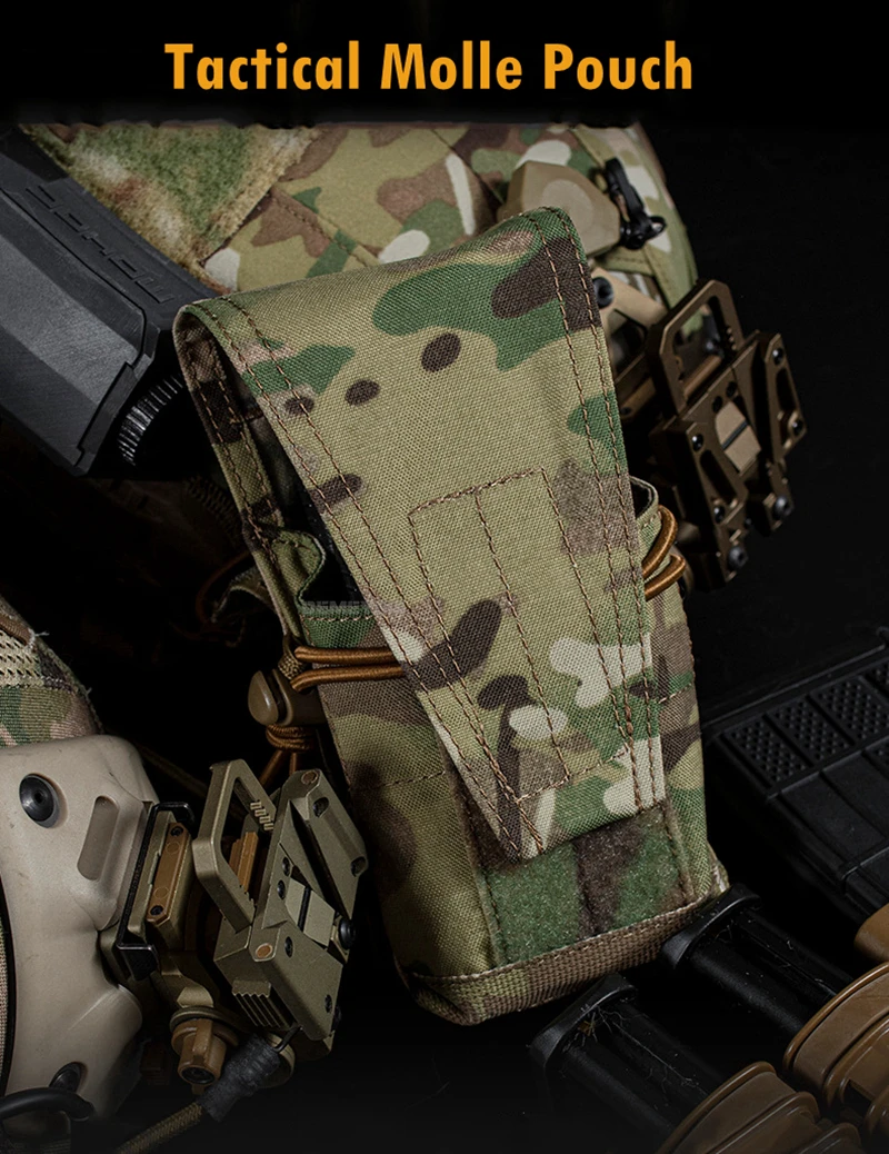 ●Sistema Molle. La dos correas Molle traseras es conveniente para colgarla en su cinturón táctico, chaleco táctico o mochilas como accesorio adicional.