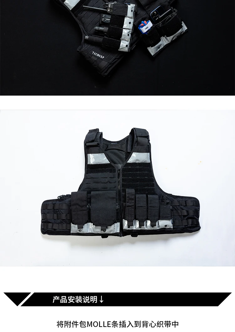 Bolsa de accesorios de chaleco táctico, bolso de pecho colgante de pecho desmontable rápido, bolso lateral de módulo reflectante, multifuncional con soporte de peso