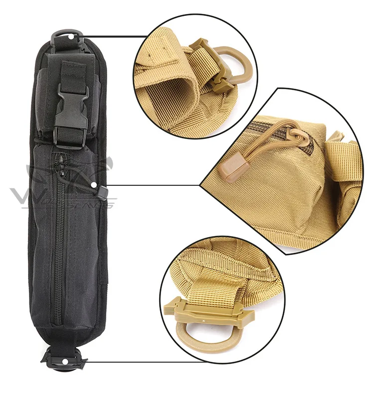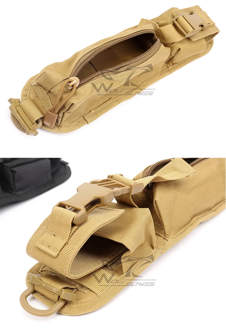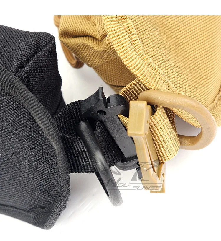 • Diseño MOLLE, que se puede conectar fácilmente al cinturón, correa y bolsos MOLLE.