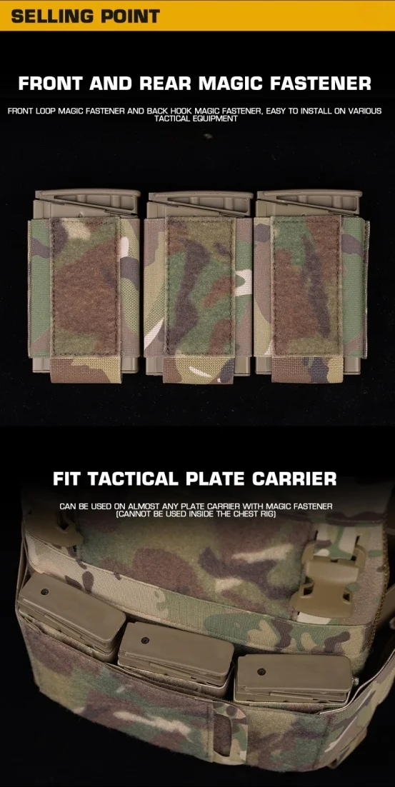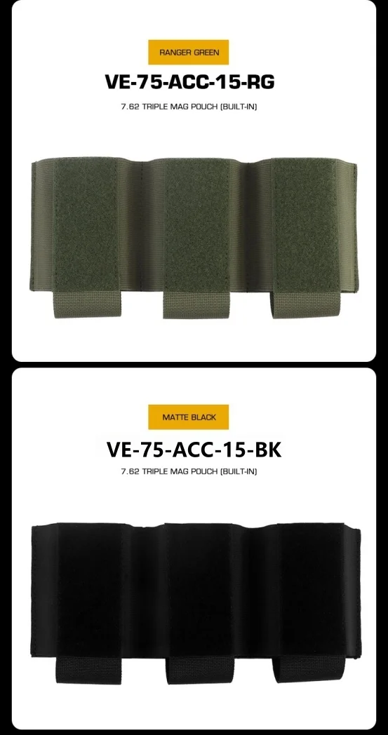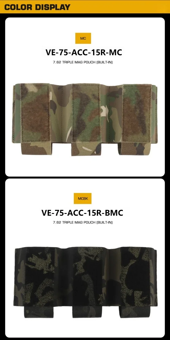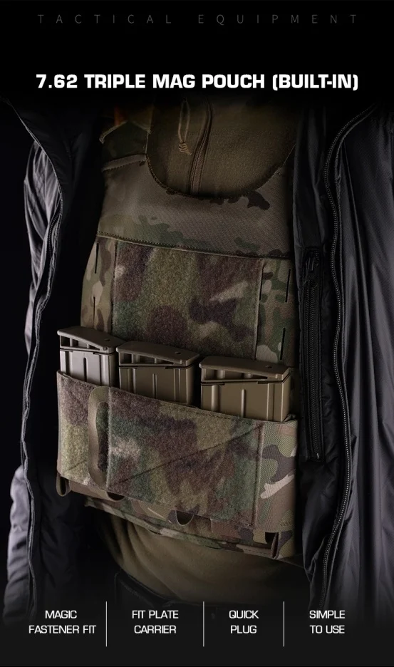 Bolsa de accesorios con triple clip compatible con camiseta sin mangas, bolsa triple con función 7,62, adecuada para juegos CS en vivo al aire libre