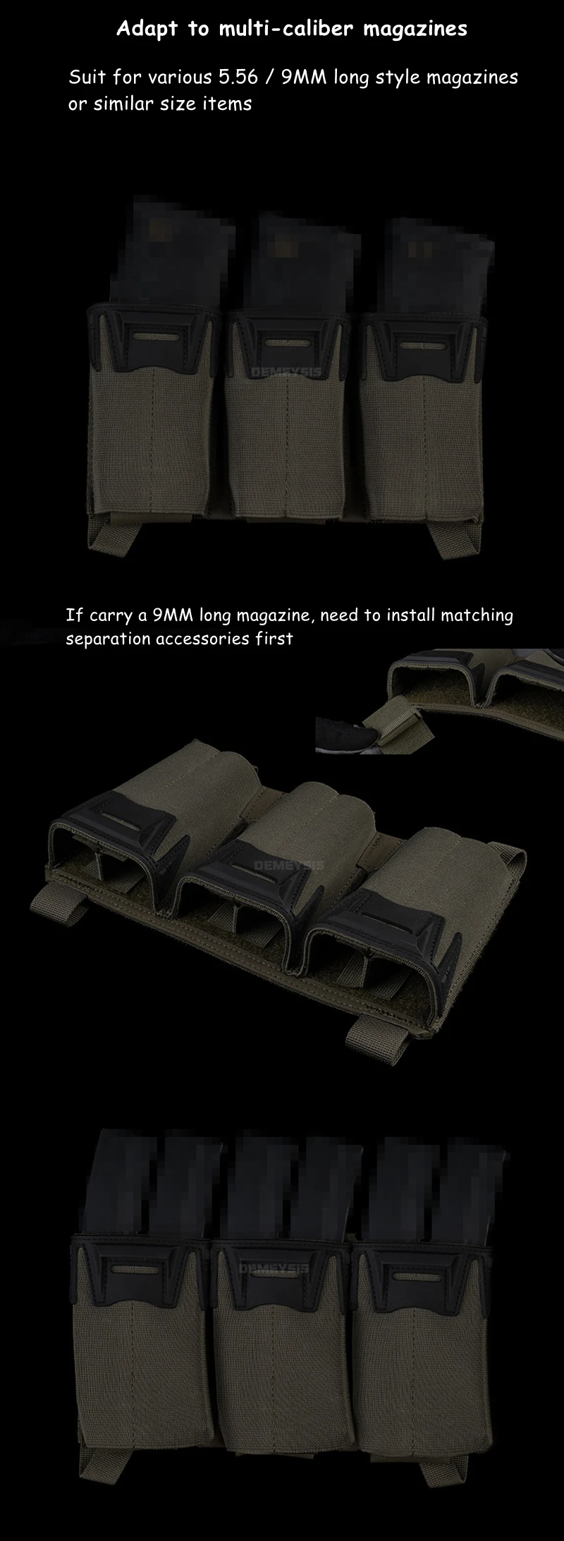 🔫 Ajuste de doble calibre – Capacidad para 3 cargadores de 5,56/9 mm o artículos similares.