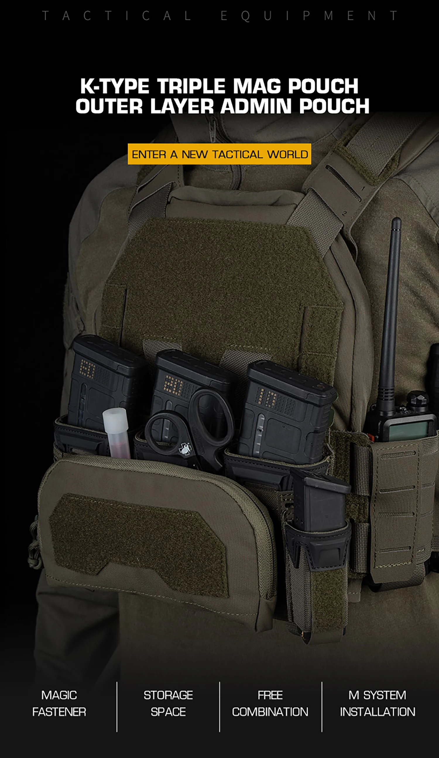 ENTERE UN NUEVO MUNDIAL TÁCTICO con la bolsa de administración de capa exterior KZ.Con un peso de solo 0,12 kg, este versátil panel de administración es el núcleo organizativo definitivo para su equipo torácico modular o cinturón de batalla.Diseñado para funcionar a la perfección con la bolsa KZ Triple Mag (se vende por separado), cuenta con una cremallera de 3 direcciones, múltiples organizadores internos y presillas elásticas traseras, lo que ofrece un almacenamiento incomparable para sus elementos esenciales en airsoft, entrenamiento táctico o servicio profesional.