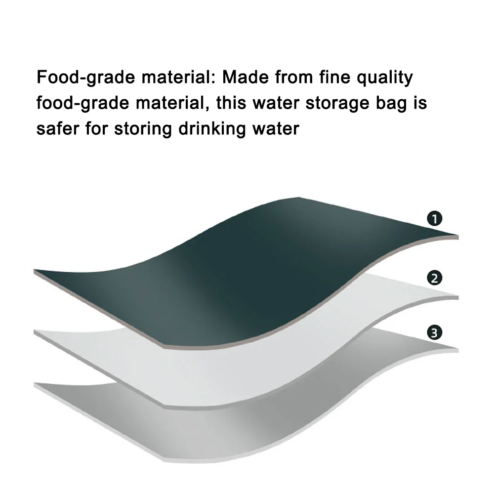 Material apto para uso alimentario: hecha de material apto para uso alimentario de alta calidad, esta bolsa de almacenamiento de agua es más segura para almacenar agua potable.