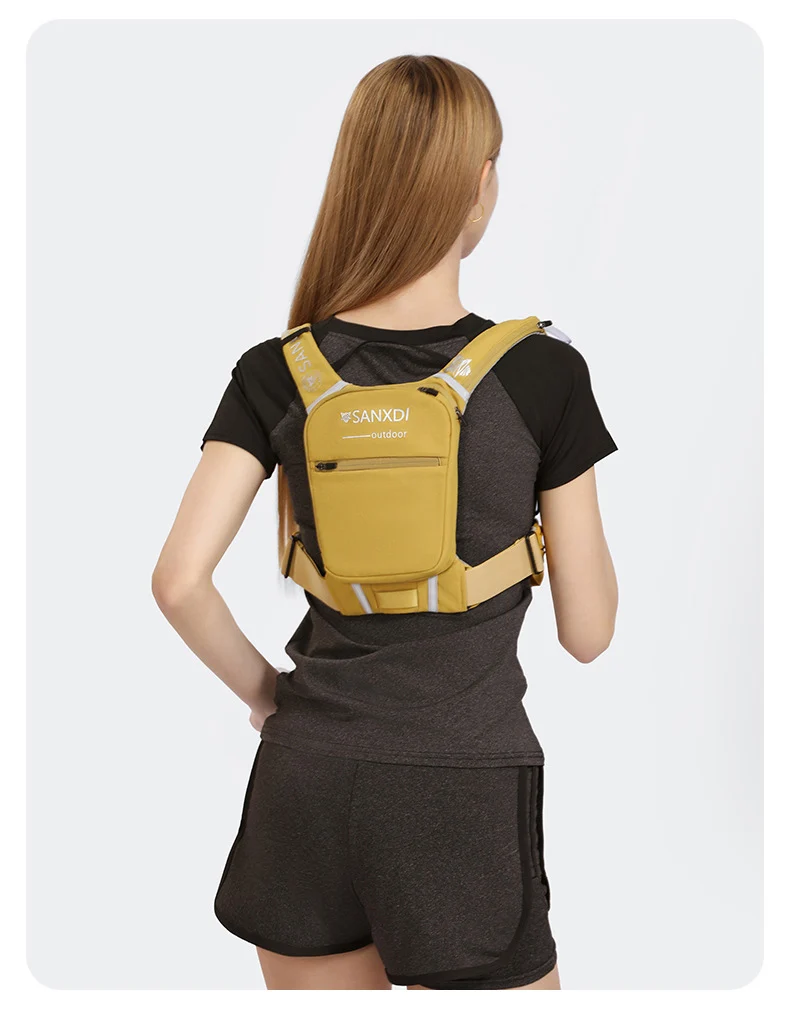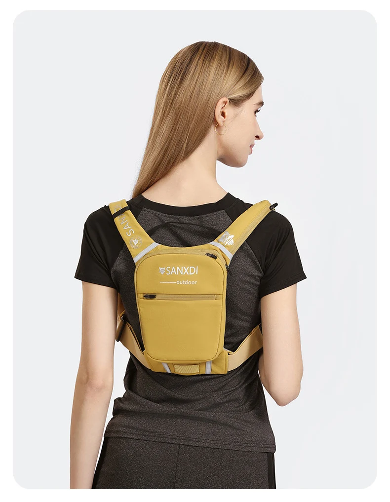 6.Bolsillo para teléfono móvil con ranura para teléfono móvil incorporada, el teléfono fijo no tiembla, el bolsillo con cremallera del cuerpo de la bolsa se puede colocar en las cosas pequeñas de la tarjeta, el silbato incorporado con ranura del bolsillo izquierdo en el pecho, el lado derecho de la mini ranura se puede colocar sobre los artículos pequeños