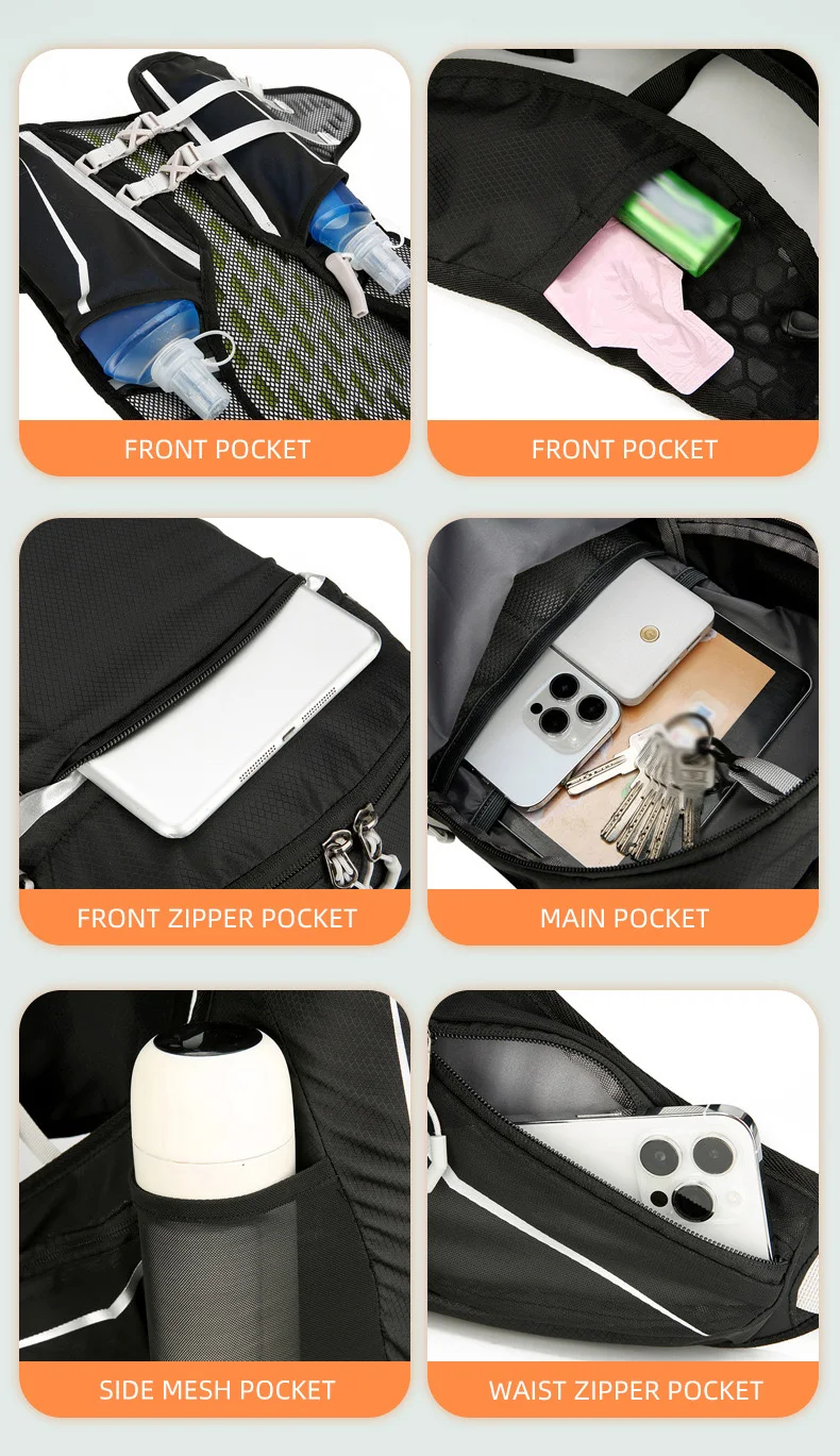 1.Juego de bolsa principal de gran capacidad, diseño de cremallera multicapa con cuerpo de bolsa, almacenamiento razonable de varios artículos de ciclismo