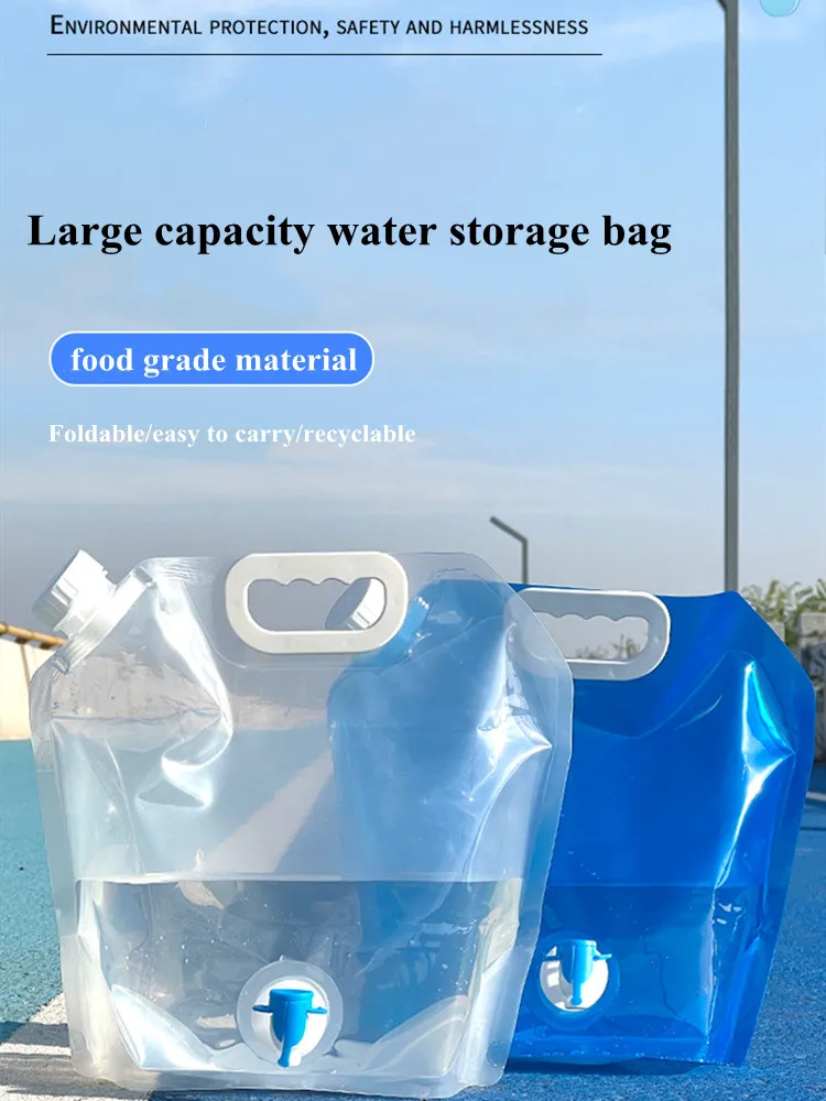 Bolsa de agua portátil para acampar, contenedor de agua grande plegable para exteriores, bolsas de agua de 10 litros, cubo de almacenamiento de agua plegable, 5/10L