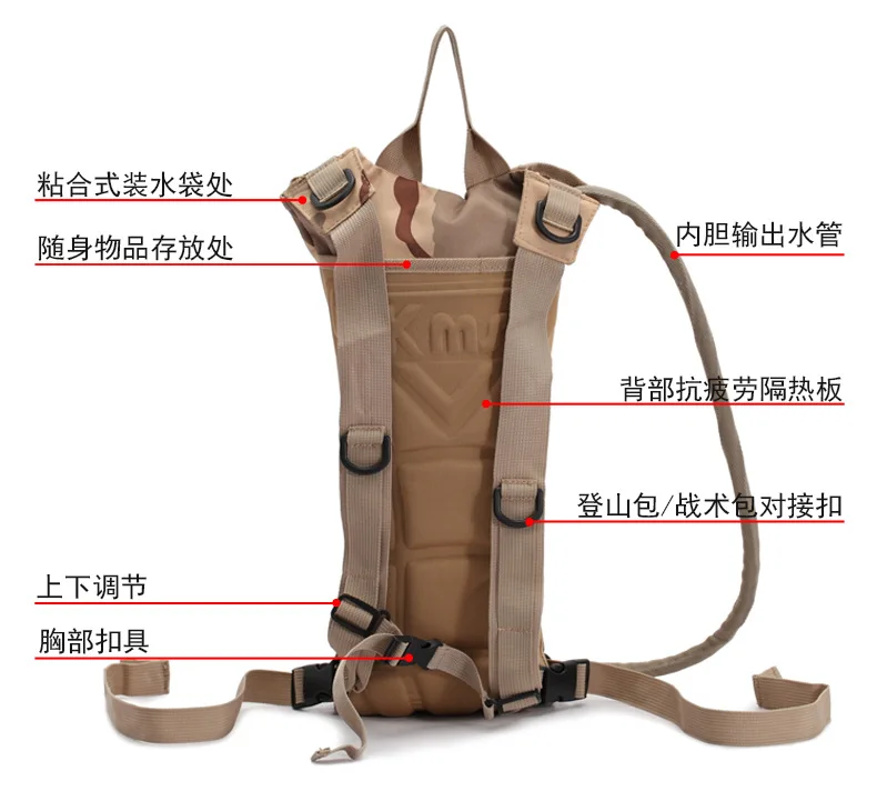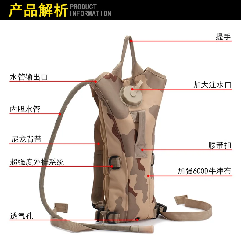 Bolsa de agua táctica de 3L, mochila de gran capacidad para montañismo, desierto y exteriores