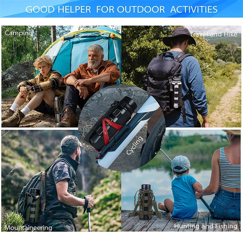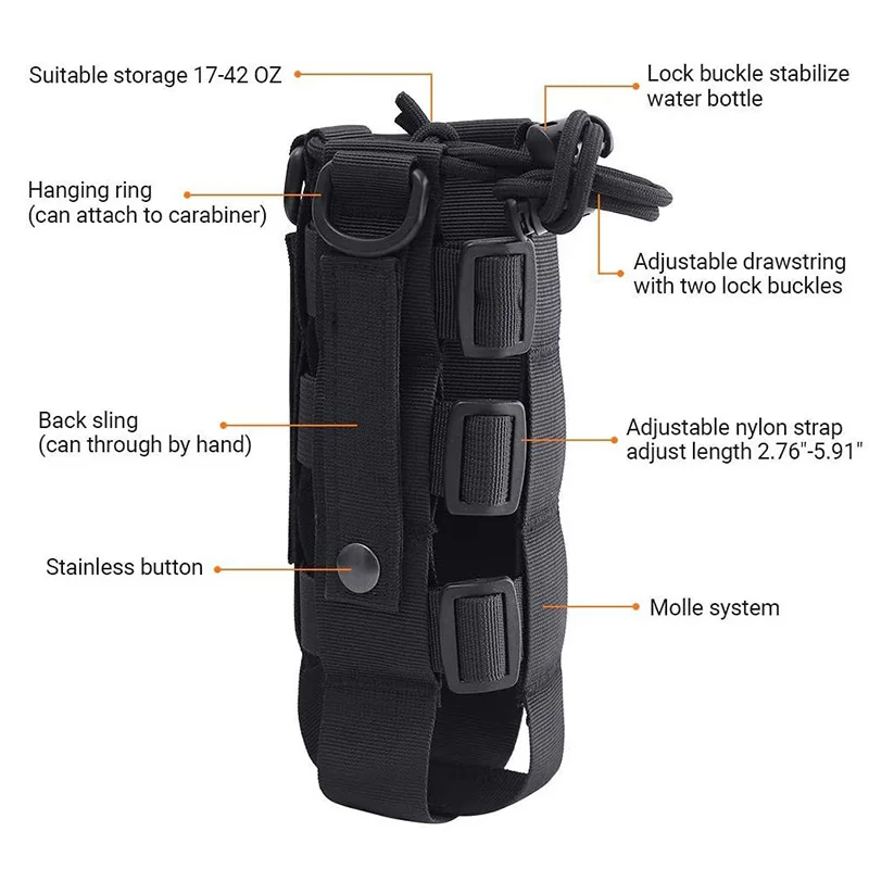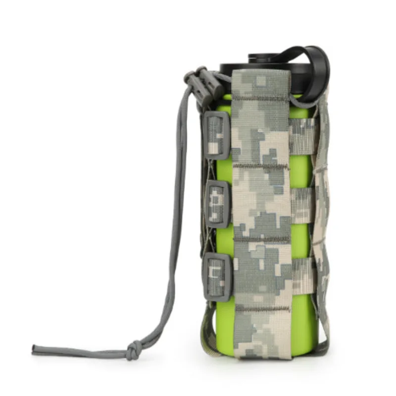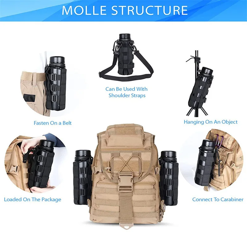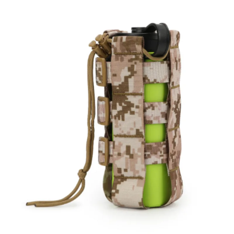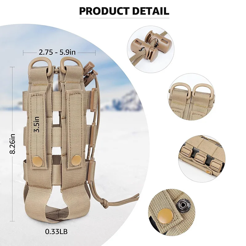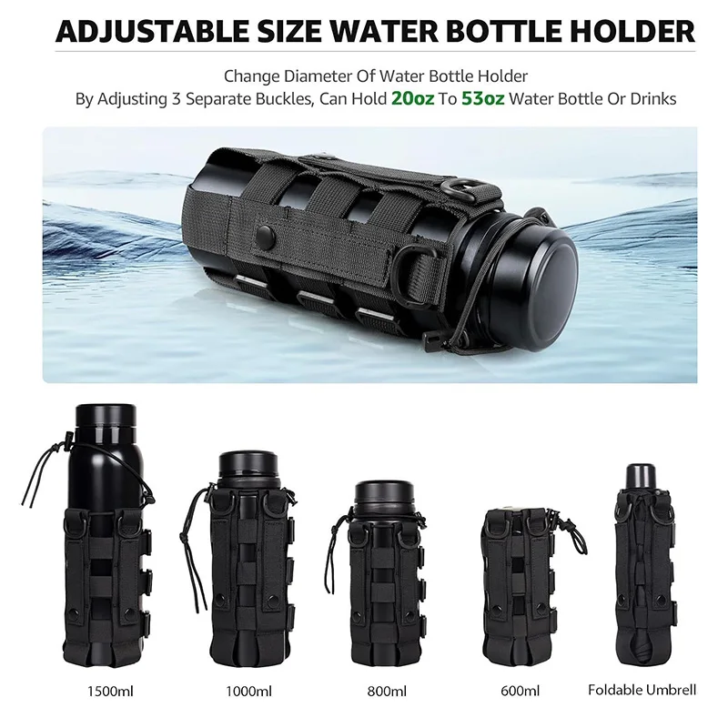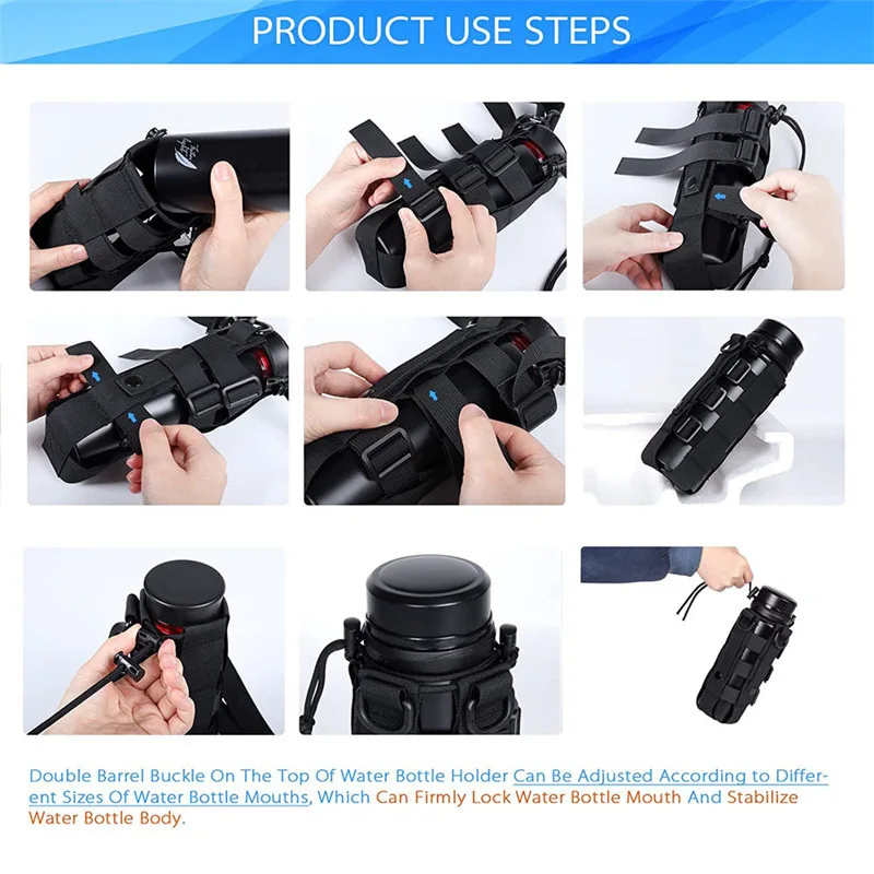7 Esta bolsa para botella de agua está equipada con un cinturón conector del sistema Molle, se puede colgar fácilmente en bolsas grandes, también se puede colgar en el cinturón para usar, para que la bolsa sea más personalizada y práctica.