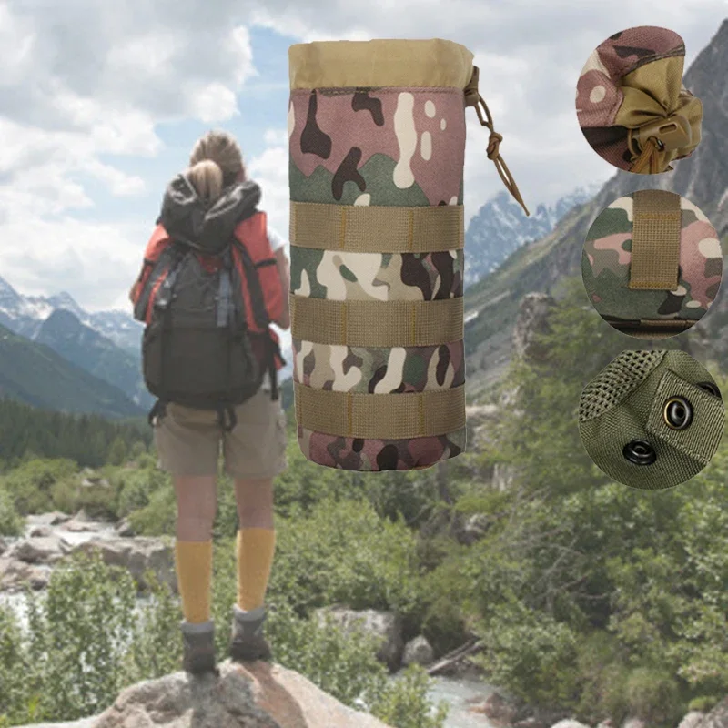 *Conexión Con la cuerda de goma para que la botella de agua permanezca estable en la bolsa, haga que su mochila sea más personalizada y práctica, pero también se puede colgar en un cinturón.