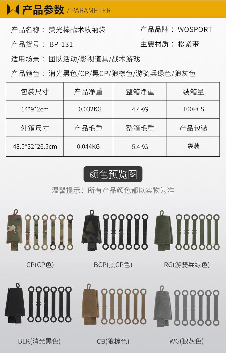 Bolsa de almacenamiento de camuflaje táctico de palo fluorescente con cuerda colgante, 2 tipos de bucles de tracción y varias combinaciones de uso
